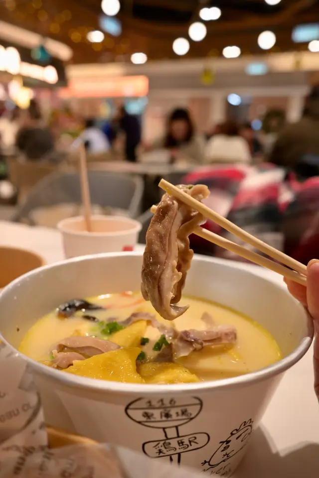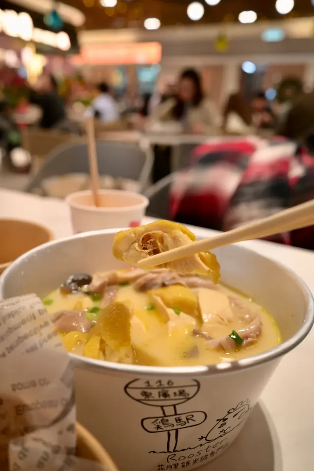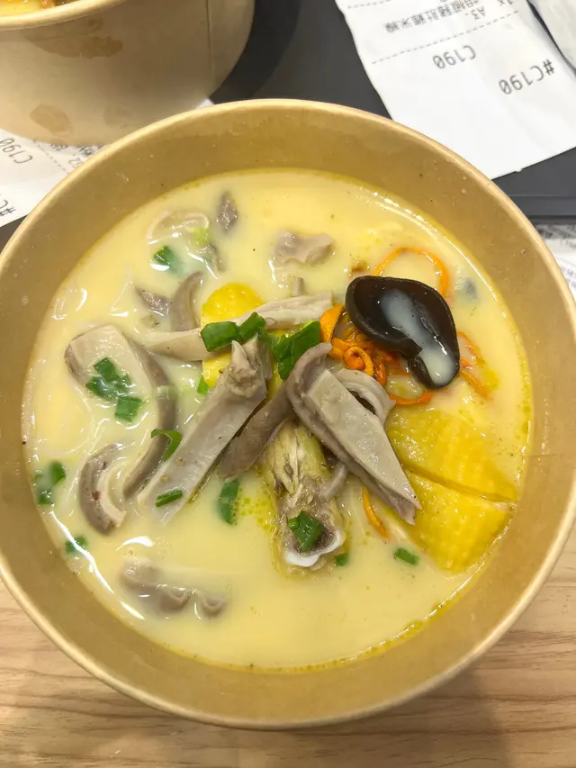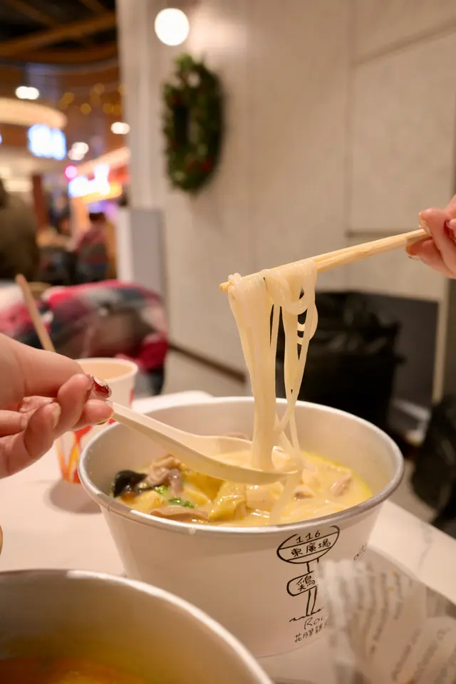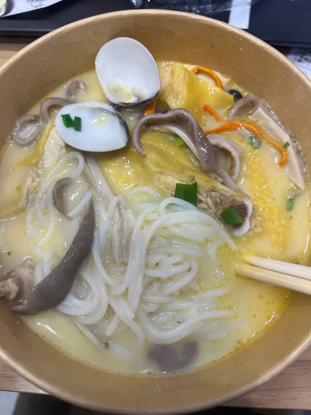 觀塘收工近近地去鄰近MTR 既東廣場搵食,一樓嗰層類似food court咁樣中間好多位自己揀嚟坐。見到間舖頭幾多人等就試吓佢。叫咗一碗推薦花膠雞米線,同胡椒豬肚雞米線。一嚟梗係試吓個湯先啦,一飲個鮮味突出到,即刻飲多幾啖,係完全可以飲晒嘅Level,雞就正常料,嫩滑嘅,但連埋皮同脂肪一齊食個口感就麻麻哋,花膠同米線冇咩特別。仲有碗就都類似,同款湯底加咗胡椒咁,唔會好辣,都好飲既,前題唔好預佢好似出邊啲胡椒豬肚湯咁重味。其他配料就同上,冇咩特別。但最後為咗個湯都值得嚟試一試。