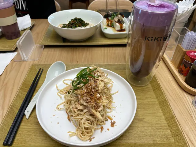 收工了,需要美食療癒心靈~😌 奈何月尾,咭數逼人🥲🥹 努力揀中平價美食。去了IFC,Kiki 麵menu 好多選擇,就坐下了。點了一個全日套餐$148,有麵食,小食和飲品,轉特飲加$18💁🏻♀️🍜 胡麻棒棒雞拌小醋麵 - 好香濃的胡麻醬😍😍😍簡單地配上小麵,每一條都很掛汁,加上雞絲和蒽條,拌上小小醋香,十分開胃🤤。大推👍👍👍👍👍💁🏻♀️凉拌皮蛋豆腐件 - 皮蛋和豆腐很相襯,加上肉鬆和木魚絲鋪上面,清清甜甜😋 ,不油不膩,很適合夏日💁🏻♀️口水魚片份 - 辣的,魚片爽脆,應該是脆肉鯇。很大碟😂 很足料抵食。💁🏻♀️熱芝士海鹽迷你芋圓黑糖鮮奶 - 很厚的芝士奶蓋,新鮮的迷你芋圓和鮮奶,一次過滿足好多個願望😂😍😊 在KiKi麵店叫特飲一定不會中伏,KiKi茶本身就是一間好高質的茶飲店嘛~💁🏻♀️最後是抹茶紅豆生乳捲 🍰 - 完美句號,抹茶味濃,不會太甜。劃上滿足一天的句號。📍KiKi麵店 (國際金融中心)🏫地址: 中環金融街8號國際金融中心商場2樓2017號舖…查看更多