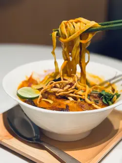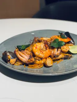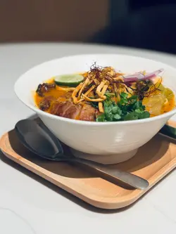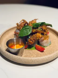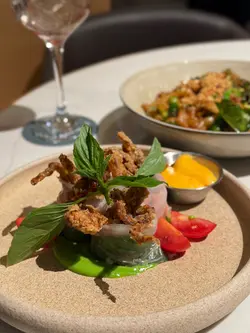 🙋🏻♂️餓底探員去尖沙咀調查呢間泰國菜,餐廳走木系風格,泰國直送食材及私房製醬汁,以新派手法融合於西式菜餚入面,主打泰西fusion菜式,仲有私房泰式粉麵,創意手工甜品,特飲同雞尾酒,可以體驗到不一樣嘅泰式風情🍗泰鹹蛋黃金單骨雞翼 $78🙋🏻♂️表示單骨雞翼炸到金黃色,表面以鹹蛋黃醬包住,外脆內軟,雞肉嫩滑多汁,食落充滿住鹹蛋黃醬嘅鹹香,香口惹味🦀脆炸軟殼蟹米紙卷配牛油果醬 $128🙋🏻♂️表示香滑軟糯嘅米紙卷包住脆炸軟殼蟹,口感對比強烈,軟殼蟹炸得香脆,肉質鮮甜,配上香濃牛油果醬,增添清新氣息🍝冬蔭功濃汁虎蝦意大利麵 $148🙋🏻♂️表示以傳統泰式冬蔭功融合意大利麵,配上大蝦,青口,魷魚等海鮮,麵質彈牙,每啖都充滿濃郁冬蔭功汁,香辣惹味,將泰西料理完美結合🍜清萊咖喱豬頸肉金麵 $86🙋🏻♂️表示呢個金麵係泰北經典麵食,麵質爽彈充滿蛋香,配上香軟爽口嘅豬頸肉,咖喱湯頭辛香濃郁,帶有濃厚椰香,面頭放上脆炸嘅麵條增添口感🍋阿閒泰氮氣冷泡檸檬茶 $58🙋🏻♂️表示檸檬茶用港式茶底配上西式茶葉,以冷泡方式處理,配上鮮榨檸檬汁,冷泡茶注入氮氣形成泡沫,飲落香醇細滑,營造出啤酒般嘅口感,非常特別🍵阿閒泰奶綠 $48🙋🏻♂️表示綠茶同奶形色夢幻嘅漸層,飲落茶味甘香,底層有香甜嘅煉奶,配上經焦糖化嘅香蕉,增添甜蜜氣息📈吃貨指數😋好味度 9/10🔙返啅度 9/10…查看更多