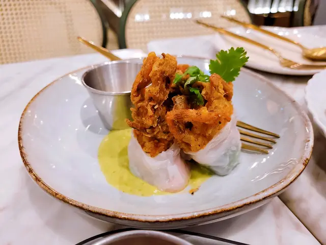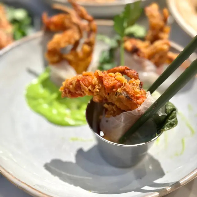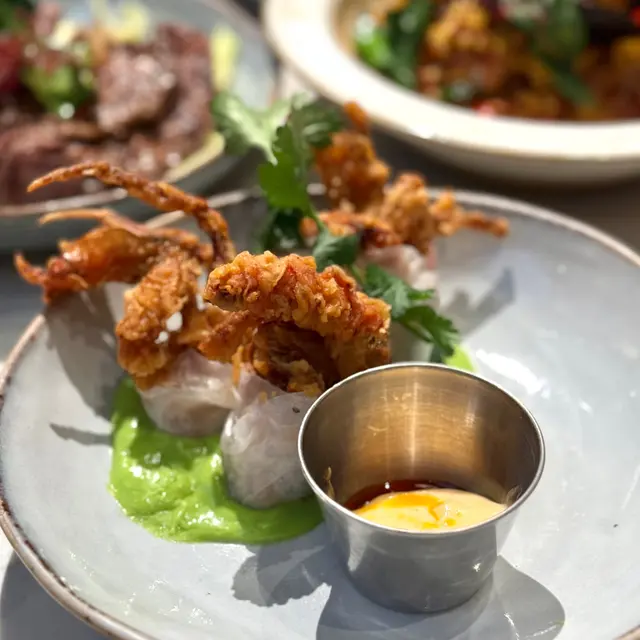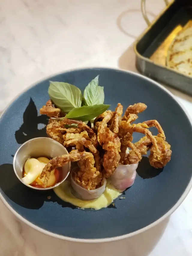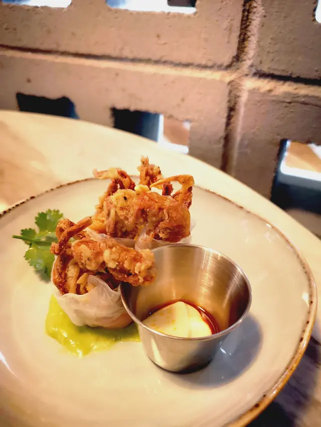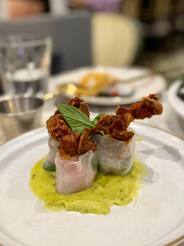 🙋🏻♂️餓底探員去尖沙咀調查呢間泰國菜,餐廳走木系風格,泰國直送食材及私房製醬汁,以新派手法融合於西式菜餚入面,主打泰西fusion菜式,仲有私房泰式粉麵,創意手工甜品,特飲同雞尾酒,可以體驗到不一樣嘅泰式風情🍗泰鹹蛋黃金單骨雞翼 $78🙋🏻♂️表示單骨雞翼炸到金黃色,表面以鹹蛋黃醬包住,外脆內軟,雞肉嫩滑多汁,食落充滿住鹹蛋黃醬嘅鹹香,香口惹味🦀脆炸軟殼蟹米紙卷配牛油果醬 $128🙋🏻♂️表示香滑軟糯嘅米紙卷包住脆炸軟殼蟹,口感對比強烈,軟殼蟹炸得香脆,肉質鮮甜,配上香濃牛油果醬,增添清新氣息🍝冬蔭功濃汁虎蝦意大利麵 $148🙋🏻♂️表示以傳統泰式冬蔭功融合意大利麵,配上大蝦,青口,魷魚等海鮮,麵質彈牙,每啖都充滿濃郁冬蔭功汁,香辣惹味,將泰西料理完美結合🍜清萊咖喱豬頸肉金麵 $86🙋🏻♂️表示呢個金麵係泰北經典麵食,麵質爽彈充滿蛋香,配上香軟爽口嘅豬頸肉,咖喱湯頭辛香濃郁,帶有濃厚椰香,面頭放上脆炸嘅麵條增添口感🍋阿閒泰氮氣冷泡檸檬茶 $58🙋🏻♂️表示檸檬茶用港式茶底配上西式茶葉,以冷泡方式處理,配上鮮榨檸檬汁,冷泡茶注入氮氣形成泡沫,飲落香醇細滑,營造出啤酒般嘅口感,非常特別🍵阿閒泰奶綠 $48🙋🏻♂️表示綠茶同奶形色夢幻嘅漸層,飲落茶味甘香,底層有香甜嘅煉奶,配上經焦糖化嘅香蕉,增添甜蜜氣息📈吃貨指數😋好味度 9/10🔙返啅度 9/10…查看更多