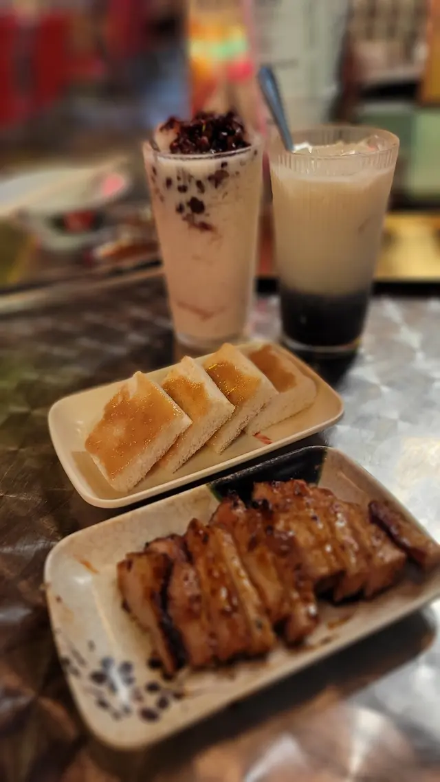 同朋友諗緊晚飯食咩嘅時候,路過這間串燒店好有懷舊感覺,貪得意入去食晚飯😂位於銅鑼灣的「毫無分串陀地串燒酒場」店內裝潢玩味十足,一踏入串燒店就見到牆上掛有霓虹燈牌💡仲有貼滿寫上不同祝福句的特式小巴膠牌🖼及麻將膠牌🀄,餐桌椅則是舊式茶餐廳的款式。串燒店主打港式創意串燒🍢,菜式如維他奶醬燒、老銅牛叉燒等充滿驚喜🤩。店員介紹晚市餐牌的同時,亦有介紹午市優惠,原來惠顧午市就可以+$0.5轉加加大勁量凍飲🥤,足足有1L🤩睇下我同朋友食咗啲咩啦😁唔L同沙嗲牛肉麵 名字很地道,店家自己將沙嗲牛肉麵加以改良🍜,牛肉份量不少🐮,牛肉片厚薄適中,肉質唔會過份軟腍有嚼勁,味道偏甜,仲有少少麻辣味🌶,加入了沙嗲醬汁的湯底,味道香濃不膩🤭。維他奶醬燒維他維奶醬燒系列 係今次最大亮點之一,將港式懷舊飲品融入串燒🍢,玩味十足🤍🔹️免治雞肉條肉質嫩滑,入口可以吃到粒粒的雞軟骨🐔,帶少少焦香。🔹️獅子狗口感煙韌,維他奶醬添加層次感。🔹️豆卜燒得外皮香脆,內裡口感嫰滑,加上面頭的維他奶醬,口感豐富❣️🔹️翠玉瓜 烤過後仍保持水份💦,而且好清甜。🔹️日本小甜薯外脆內綿,甜度剛好。🔹️芝士年糕煙韌年糕加上拉絲芝士🧀,邪惡得嚟又好食。維他奶奶凍特維維他奶奶凍飲 是港式懷舊凍飲回憶🧊🔹️紅豆冰紅豆煮得夠腍🫘,甜度適中,奶味濃郁🥛。🔹️黑芝麻冰 芝麻味道濃郁,加入奶凍,口感滑順又豐富。蒜蓉燒蠔 燒燒燒蠔 (半打) Follow餐廳FB或IG,每一枱只要叫夠10串串燒🍢就可以以+$68 叫半打蒜蓉燒蠔🧄🦪 (原價$145),還可以追加人頭一份。蠔肉肉肥美,蒜香撲鼻🧄,火喉控制得好,唔會過熟,抵食又鮮味。其他串燒🍢🤭老銅牛叉燒🐮店員介紹必食串燒,外層微焦,肉質有嚼勁,甜中帶鹹,好有港式燒味風味。鹽燒牛舌鹽鹽鹽燒牛舌芯 牛舌芯切得厚薄適中🐮,口感軟腍,鹽味提升牛舌本身的味道。惹味雞腎惹惹惹味雞腎雞腎無腥味,醬汁惹味帶微辣🌶,食落爽脆,口感有嚼勁😋腐乳多士腐腐腐乳多士 腐乳味濃而不嗆,配上香脆多士🍞,估唔到咁夾。…查看更多