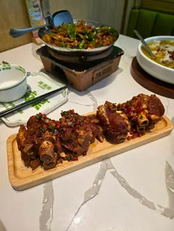 ‼️最受香港人歡迎既湘菜,排隊王‼️辣湘湘係香港人北上最鍾意食嘅湖南菜,亦係本土企業,所以結合左香港人既口味,自由辣度亦可選擇。新開個時,已經成日見到排隊等位,原來午市套餐人均$50就食到而且仲免加一,下午茶更平,$29就有半隻雞套餐,好抵食🥹,唔怪得排哂隊,旺角仲開埋分店!環境方面,地方闊落坐得舒服,又多卡位,亦有圓枱適合3-6人聚會,另外要讚既係落雨☔️竟然免費送雨遮,好貼心既服務🥹又有得食又有得拎🤣應承我一定要去食呢間👍🏻-💕湘味酸菜魚 $149👅好味指數:8/10份量巨大🤣酸菜,魚同粉絲都多👍🏻湯底酸辣味香濃,魚肉嫩滑得黎又無骨,必叫!-💕膠原脆皮豬手 4隻$89👅好味指數:7/10黎到嚇親,好大一件,大過拳頭😂外皮炸到好香脆,秘製滷水好入味,内裏滿滿骨膠原,面層要灑滿洋蔥同辣椒,又香又脆!-💕辣椒炒肉 $99👅好味指數:9/10份量多!好夠鑊氣!豬肉大塊唔鞋口!辣椒夠椒香,撈飯一流🥰-💕湘式拌魚皮 芥末味 $79👅好味指數:8/10醬汁有淡淡的芥末味,幾特別😳,食落爽脆開胃。份量多到好似食麵咁😂-💕麻花糍粑 $39👅好味指數:8/10扭花形狀,外層沾滿黃豆粉,口感好煙韌Q彈,黑糖醬汁唔會好甜👍🏻-💕乾鍋肥腸 $89👅好味指數:8/10好香好有鑊氣,肥腸份量多,好爽口,唔韌唔會咬唔開!愛吃肥腸必食!-💕鴨屎香檸檬茶 $45👅好味指數:8/10超大杯😂甜度剛好🥰飲落好清新!-💕解暑西瓜檸檬茶 $39👅好味指數:8/10估唔到又幾夾!飲嚴鴨屎香可以試下依個!飲落幾清甜,仲有一大塊既西瓜🍉解油膩!-💕大煲飯 $30👅好味指數:8/10成個飯煲上,好抵食🤣😂都有成4碗份量 。-環境:8/10服務:9/10整體味道:8/10回頭率:8/10…查看更多