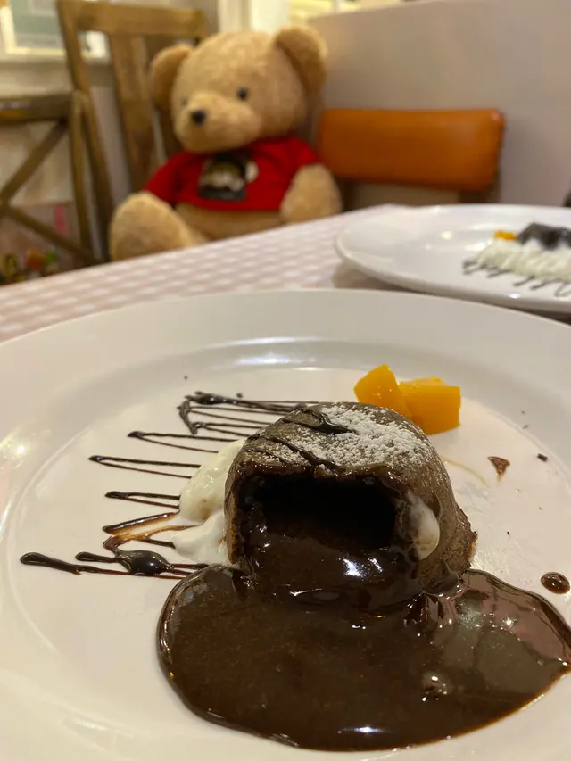 今日同朋友係寶琳睇完戲,有啲肚餓,所以就打算食個tea ~ 咁啱發現呢到有間熊仔主題打卡餐廳好得意,於是就入去試下🐻*自家製心太軟 $52超推薦心太軟!外皮焗得好鬆脆,而入面嘅蛋糕就好濕潤,加上一切開之後裡面嘅朱古力漿就開始慢慢湧出來,畫面好治癒🤤用蛋糕蘸朱古力漿一齊食真係好好味,朱古力味超濃~如果你蘸埋忌廉一齊食,仲會多咗少少奶香味添😋*烤棉花糖吐司 $44吐司烘得好香脆,上面淋咗朱古力醬同埋煉奶~棉花糖係燒過的,外脆內軟,而且有淡淡嘅焦香味,有少少似BBQ燒棉花糖會食到嘅味!吐司嘅香脆同棉花糖嘅鬆軟意外地好夾,值得一試😚*秘制炸物小食拼盤 $69食完甜嘢緊係要食翻啲鹹嘢過渡下~個拼盤我叫咗吉列蝦、芝士腸同脆炸魷魚圈~全部都炸得好鬆脆,完全唔油膩,配上沙律醬真係好香口💗最後值得一提嘅係熊小館嘅環境,真係好少女心好多熊仔好打卡able,覺得無論係親子、朋友、定係拍拖一齊黎都好適合🐻…查看更多