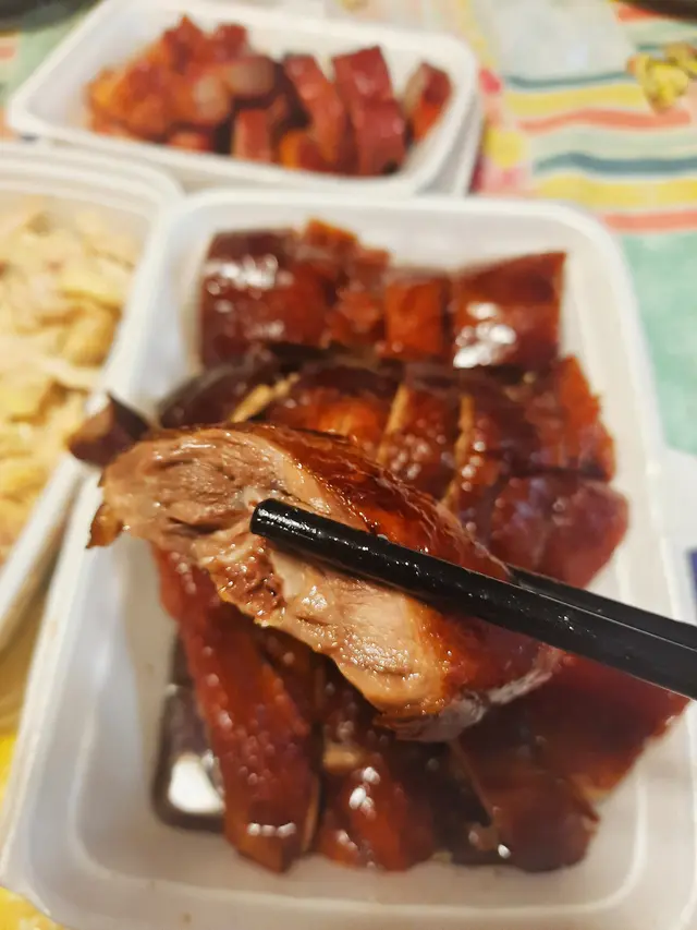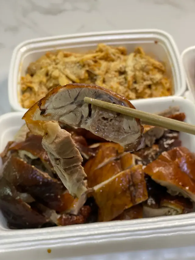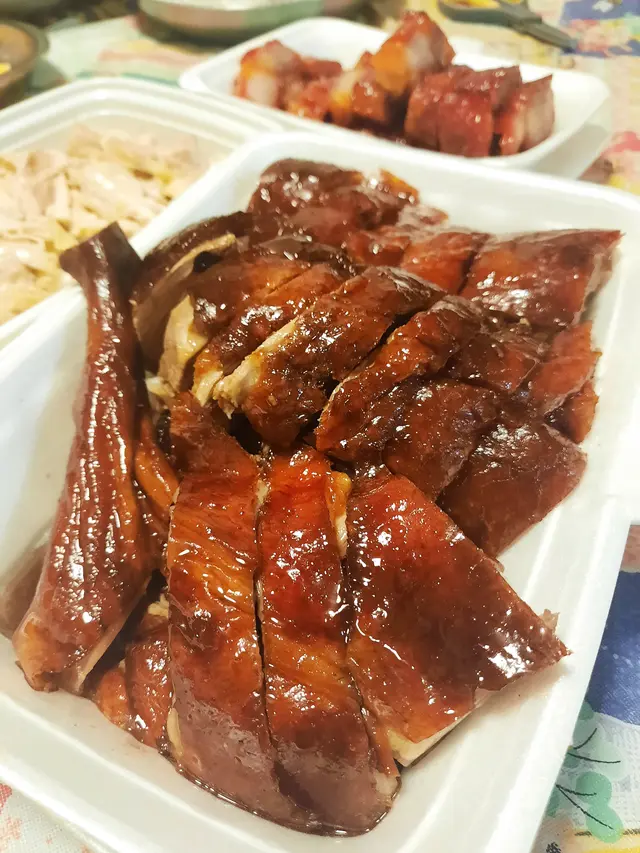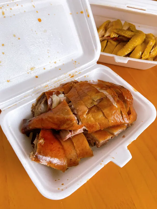 好耐無去過慈雲山搵食,聽聞近日新開咗間平靚正燒味🤩一於買返屋企加料等老媽子唔使煮得咁辛苦啦😋離遠已經見到門口大大張poster寫住$22/盒燒味飯🍚今時今日仲做到呢個價,唔怪得咁墟冚😳【至尊燒鵝】燒鵝皮薄,唔算好多肥膏👍🏻肉質鬆軟有肉香🤤【老師傅燒腩仔】微溫狀態下嘅外皮都保持到脆卜卜👍🏻燒肉肥瘦適中夠香口😋【原味手撕雞】份量十足嘅手撕雞...半隻已經差唔多迫爆咗個外賣盒🤣啖啖肉好惹味,送飯一流呀😍值得一讚嘅係呢度收銀員同斬料師父係分開唔同人去做,夠晒衛生🥰👍🏻見過好多傳統燒味舖都係師父呢頭斬完燒味...立即又用油淋淋嘅手去收錢,掂完錢又幫下個客人繼續斬燒味😖諗起都好恐怖🤢…查看更多