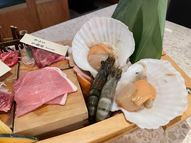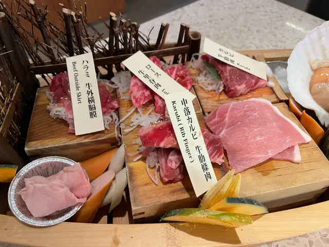 餐廳環境幾舒服,幾寬敞,唔似平時食開果間得塊膠板隔住。食物有啲係店員送上,有啲會經輸送帶自取,擺盤賣相好靚。第一次黎試下Course B $448,25款精選牛肉,連埋海鮮,雞,豬,蔬菜,熟食炸物等總共有102款,選擇都好多。當中有唔少不常出現在一盤燒肉店的選項,例如牛刺身,牛外橫隔膜。首先上枱的是Course B預設的桶·盛合與舟·盛合,有雞肉,腩肉,牛肋肉,牛里脊,帶子以及蝦。擺盤幾靚,食落都正。之後當然要試下牛刺身,有款係似薄切牛扒,外層熟,內層生,食落都幾嫩。另一款特選拌生牛肉,用雞蛋拌匀,口感順滑,牛味幾濃。多款牛肉之中,薄切牛里脊大大塊賣相吸引,不過放落網有少少痴,反而厚身啲既牛肉燒得更靚。當然食落既質感都唔一樣,試左好多款,好滿足。牛肉之外,我覺得海鮮都好吸引,廣島蠔肥美,帆立貝大隻。熟食炸物都唔錯,吉列蠔吉列蝦都幾脆口,炸粉唔會太厚。最後忍唔住叫埋個水冷麵同和牛壽司,都唔錯。到最後既最後,當然係食甜品,望住個雪條櫃,款式同級數望落都高級過一般燒肉放題餐廳,真係想瘋狂食晒咁多款,能力所限只係食到三枝…其實除左雪條,個甜品櫃,飲品區都幾多選擇,除左罐裝飲品,有幾款果茶,感覺幾健康。.今次食Course B 都好滿足,但見到餐廳有日本和牛識別號,産地係鹿兒島同宮崎,再望到個牛肉櫃同處理房,下次想比貴啲試下Course C/D…查看更多