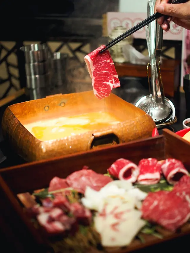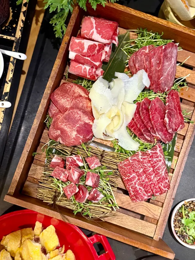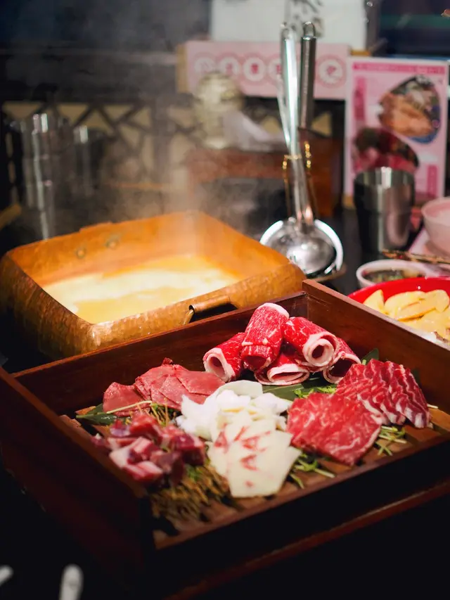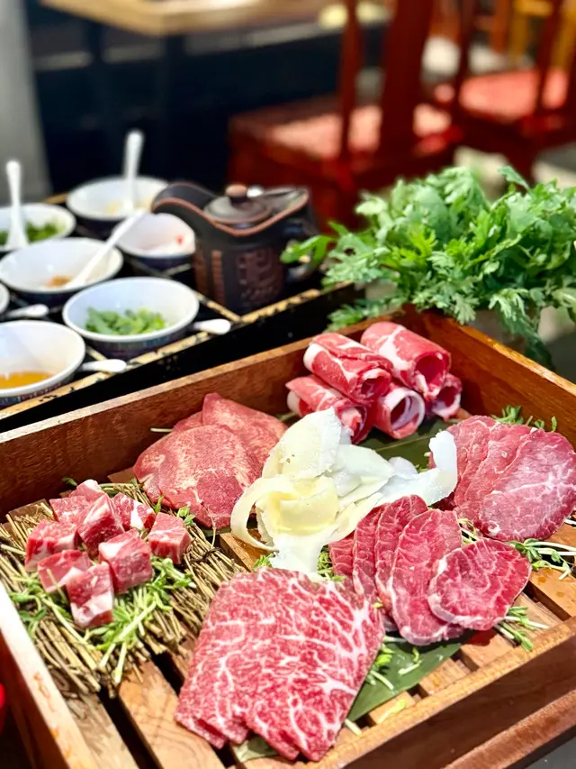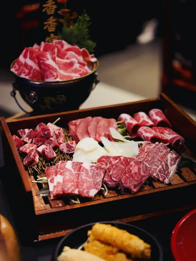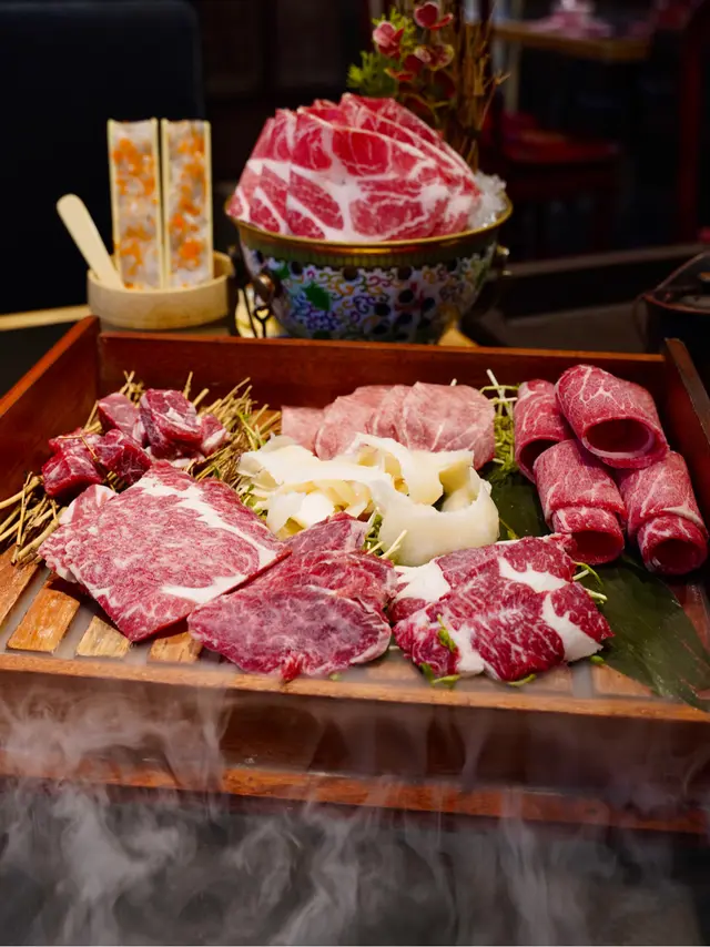 一直都想去呢間中國宮廷風火鍋打卡,今次幫朋友慶生終於有機會啦!除咗餐廳裝修華麗之外,餐具同爐具都同樣別緻,仲有宮廷服飾提供,成個感覺真係十足十置身於古代咁~✨雍穆公主•花膠雞湯鍋(半隻)花膠雞湯鍋選用咗三黃雞同埋厚身花膠一齊熬製,三黃雞肉質細膩,花膠軟嫩爽滑!湯底醇厚鮮美,真係忍唔住飲多幾碗~✨艾莎公主牛肉寶盒牛肉寶盒相當豐富,有手切牛崩沙、手切本地牛肉、新鮮牛展、頂級雪花肥牛、牛黃喉、牛肉粒、牛舌花等等,一次過可以食晒多種唔同部位,每款都牛香充溢~✨手打蟹籽墨魚丸4粒)墨魚丸爽口彈牙,表面仲有啲蟹籽做點綴~✨伊比利亞橡果豬油花紋路清晰,肉質極度細膩軟嫩,有一種芳香濃郁嘅肉香味~✨香香宮煮響鈴拼盤有普通響鈴同埋即炸黃金響鈴,即炸黃金響鈴外層好香鹹蛋黃嘅香味~✨美濃水蓮水蓮呢種菜平時比較少見,口感爽脆得來又吸收到湯底嘅精華~✨竹蔗茅根一渣打邊爐飲返杯竹蔗茅根清下熱氣就啱晒啦,連個壺都相當之別緻~…查看更多