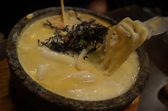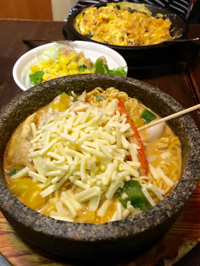芝士濃湯石鍋($56)最近天氣又凍番,所以黎左呢度食番個暖粒粒既鍋,🤓湯底係芝士配料有蟹柳、獅子狗、煎餃子、韓式年糕,食落年糕太腍面頭有大量紫菜重點係配埋勁大份量既芝士,倒埋落湯撈埋個手作意一齊食,好邪惡,手作意係自家製,食落有少少烏冬既感覺,而且條條都掛滿芝士湯,帶點鹹香味,正!跟餐+$4有埋杯蜂糖朱古力,上面有滿滿棉花糖,仲有朱古力醬,棉花糖熱溶之後配埋朱古力一齊飲唔會過甜但暖粒粒招牌特級西冷扒鐵板飯($55+$5芝士)西冷扒塊量相當大,足足10安士,照燒汁淋埋落去,好香,肉質鮮嫩完全唔韌粟米飯加埋芝士撈幾撈,仲可以整埋個超多拉絲既芝士飯!…查看更多