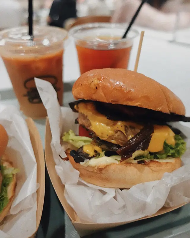 這天點了兩份套餐,各有重點。先是芝士牛堡配薯條與啤酒。麵包烤得乾爽,邊位略焦。牛肉厚而多汁,與烤洋蔥、爽脆生菜疊起,秘製醬收尾;芝士融得均勻,奶香把鹹味拉開。薯條切得粗,外脆內粉,趁熱最好。搭一口麒麟一番搾,麥香清爽,把油脂洗掉,再接著吃不會膩。另一份是日式芥辣蝦堡,配薯條和凍奶茶。蝦排炸得乾淨,咬開仍有彈性。芥辣醬微辛,刺激不過火;加上生菜與番茄,整體更清爽。凍奶茶順滑,甜度適中,與辣感相配。這家店不走噱頭,份量實在,價錢友善,做成套餐更划算喔。…查看更多