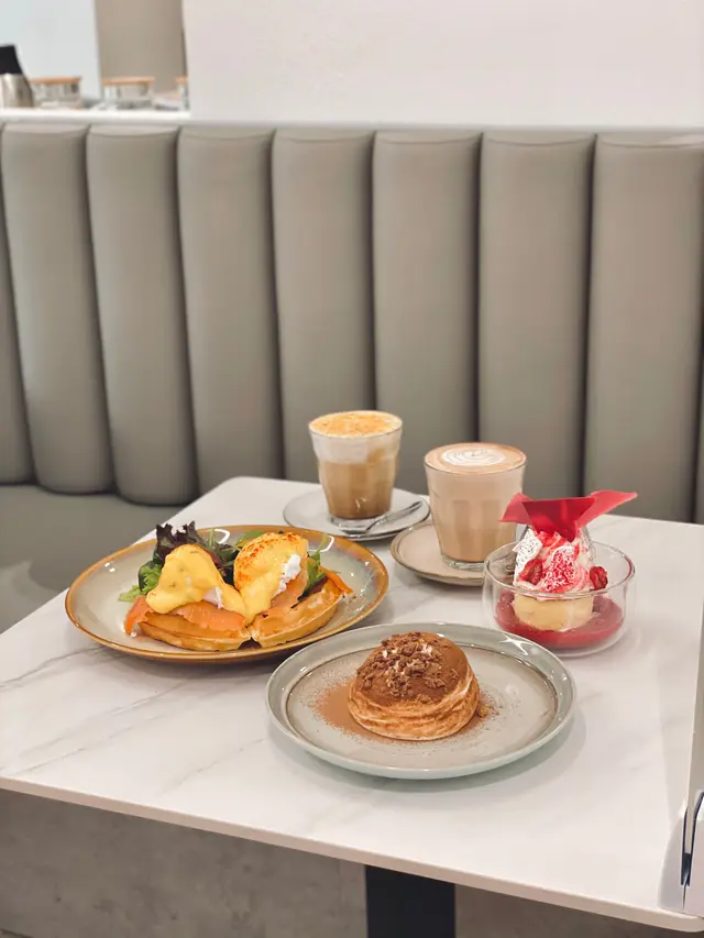 Minimal以簡約且帶點玩味為主題 門口就已經有綠色植物🌿襯托粉紅圓型sofa既打卡位~~除佐有鹹食toast同waffle 仲有飽肚啲既肉類同意粉 貓耳朵粉同埋孖辮粉好似幾特別的😍 仲有最吸引我地既甜品🙊 款款都勁igable 所有最後嗌佐兩款😛.▫️煙三文魚班尼迪窩夫 $95😋👍🏻:👅👅👅.6/5分本人真的超愛食Benedict 😍一切 蛋液就流心了🤤🤤!!次次都覺得好療癒~ 再配埋荷蘭醬好creamy窩夫🧇都依然外脆內軟 蛋液沾上鹹香既煙三文魚配搭埋牛油果🥑食落口感好豐富💕.▫️芝士蛋糕芭菲 $72😋👍🏻:👅👅👅.8/5分好igable😍😍 好多層次先係最上層插上朱古力片既雲呢拿雪糕再配口感綿密既芝士蛋糕 用酸甜既紅桑子同雜莓作底部食落唔會話過膩 同幾特別.▫️意大利芝士蛋糕 $72😋👍🏻:👅👅👅.9/5分外形實在太qq所以忍唔住嗌佐😛同平時食開嘅唔同 竟然係一個波咁😳用佐mascarpone cheese多佐陣空氣感食落質感偏軟滑 咖啡味好香濃仲加佐朱古力脆脆 加晒分😍 重點係!! 甜度仲剛好.▫️caramel Cappuccino $40😋👍🏻:👅👅👅👅.2/5分本身諗住嗌xxtra chocolate 但賣晒🥲估唔到依杯都一樣咁igable😍面頭有層燒到金黄色既焦糖 飲落甜甜地咁 超幸福的 但啡味都依然keep到好香推介俾小朋友口味嘅你💛.總結空間感好大 係同frd傾計既好地方😍 食物選擇由鹹食到主食都有 可以迎合唔同需要 鹹食waffle我個人幾愛的~~飽肚得黎唔會太full🙆🏼♀️而且食物質素都相當唔錯 特別係甜品方面好花心思用創意重新演繹佐各款甜品🥰…查看更多