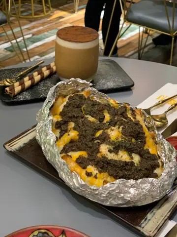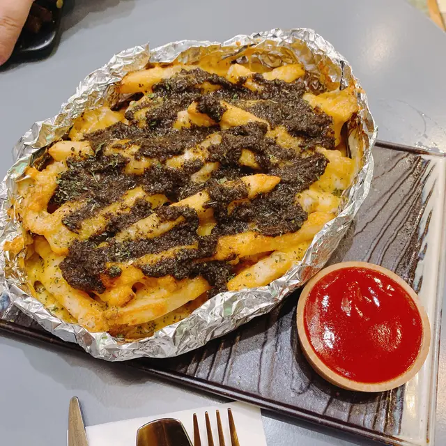 環境用心裝飾 店內位置不多 要提早預約 所有店員好禮貌本身book2點 1點半早到左 咁岩有人no show就安排左我地提早入座 今次被安排坐vip房 係與世隔絕既房仔 大約可坐8至10人店員話假如我地入座就不會再安排其他人入vip房搭枱 好貼心同我地suggest多人揀既座位店內的水是蝶豆花檸檬水焙茶latte☕️焙茶控必試 偏甜 好濃焙茶味 有拉花 薄荷檸檬梳打水芝士黑松露焗薯條🧀🍟芝士焗到外表香脆 上面舖滿超厚芝士超厚黑松露醬仲有種酸酸地辣辣地既椒好大份好好食明太子蟹肉扁意粉🦀🍝擺盤有驚喜 意粉上面一個蟹肉波 再上面一個蟹籽波意粉醬汁好creamy 足味好食黑松露野菌扁意粉🍄🍝黑松露意粉都唔錯 正常水準 一樣好creamy 兩個人食 最尾一整碟意粉食唔落 total $600+會再想encore既餐廳