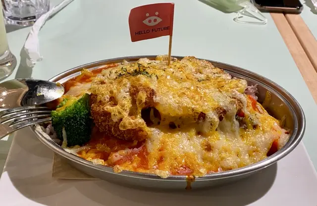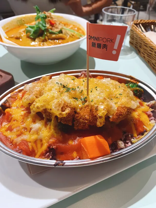 臨近聖誕🎄,一家🏠Book了荃灣西如心廣場住一晚。來到未夠鐘check in , 醫肚先。大家都食完早餐無耐,唔係太肚餓,便揀了呢間素食餐廳,第一次來,之前order過盆菜,味道唔錯。流心香芋西多士:細女叫的,炸醬好脆好薄身,內有香芋醬,但並冇流心的效果。香芋醬不算太甜,唔夠另有一小碟俾你點。南瓜粟米汁新魚柳意粉:配料幾豐富,新魚柳是素食,口感不俗,意粉都幾大碟。樂樂雞配蜜糖芥辣醬:好味過麥樂雞,唔講真係唔知自己食緊素食。芝脆焗豬扒飯:好大塊的素豬扒,配菜亦很豐富,底下是紫米飯,味道調配得很好,素食的關係,食完亦冇乜罪惡感。餐廳座位闊落光猛,價錢亦十分抵食,有機會會再嚟幫襯。👍👍…查看更多