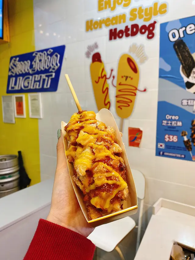 幾年前食過一次oreo熱狗覺得冇咩oreo味 今次再食 試咗唔少款 覺得進步咗 !價錢好抵食 呢到$200鬆啲夠4個人食🤔All In One Set💰HKD78有自選熱狗1個+自選donut1個+🍊特飲再食Oreo芝士熱狗棒 今次啲Oreo cereal冇炸到冇晒oreo香 i like!裡面加上拉絲mozzarella 甜鹹配搭冇得輸👍至於donut 揀咗伯爵茶味 超多餡料 似英式伯爵奶茶味道 奶味重 個dough似炸包 唔錯 特飲好誇張成個🍊插住喺上面 下面係tonic water加新鮮橙汁 幾解膩 天然甜解膩一流 過咗去兩三日切開個橙 淨果肉成250g 甜而多汁 滿足😂Hotdog Set💰HKD120有自選熱狗2個+魚糕一大串+年糕香腸串✨芝薯拉絲熱狗棒薯條熱狗棒一粒粒薯仔貼著喺面 食落勁似脆薯餅 裡面有拉似芝士 麵包軟綿 鐘意食薯條薯餅嘅人必定鐘意但我自己最喜歡雙重芝士拉絲熱狗棒 外皮有啲芝麻 較薄脆 裡面係cheddar x mozzarella 芝士特別多之餘鹹香平均 超滿足 必點!魚糕肉質一絲絲偏紮實 唔會好似魚蛋咁 我幾鍾意 不過有少少油 至於年糕香腸串比我想像中好食 考得好香 年糕食落好煙韌帶微鹹整體幾滿意 朋友聚會外賣之選 比起pizza會冇咁悶!…查看更多