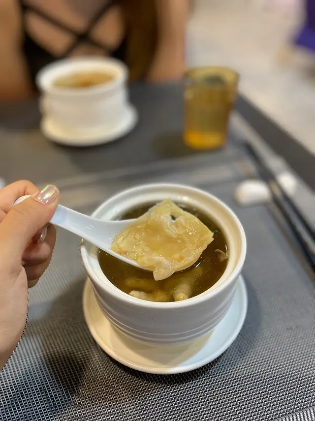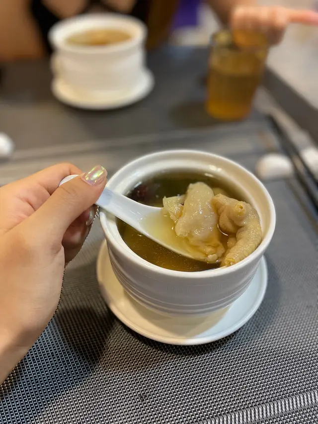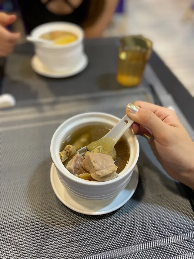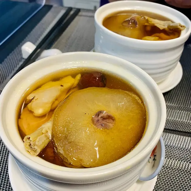 嘩!呢間煮宮真係要推介!好好味呀!佢嘅午市燉湯套餐真係好正!平時自己都會煲下湯飲,但佢嘅燉湯真係足料又好飲!由於早一日book,廚師精選燉湯會升級至花膠燉湯!加上職員一早幫我地喺WhatsApp點好餐,一入到去唔洗等,即刻有得食啦!🟡燉湯蒸飯套餐(💰$80)🟡包括一盅燉湯及一個蒸飯/陳村粉🔸花膠燉湯燉湯真係唔講得笑!真係好好飲,無乜味精,唔會飲到口渴,只會想係咁飲😂有好多好多料: 花膠、瘦肉好多舊、雞腳、元貝、杞子、紅棗、雪梨、桂圓肉。我連啲湯料都食埋👍🏻🔸蘿蔔牛肋條 配 陳村粉平時啲陳村粉可能會好油,或者好淋,一pet pet,但呢度嘅陳村粉好乾身,唔會蒸到過龍,真係恰到好處!蘿蔔好甜好入味,牛肋條都好淋,用咗好多心思去醃製同烹調!真係好出色啊!🔸蟲草花蒸雞 配 香蒜飯蟲草花蒸雞配飯又係正!佢嘅雞係煎過先再蒸嘅,雞亦都算嫩滑👍🏻加埋少少醬汁,味道唔會太濃,突出雞嘅鮮味,但又唔會搶過香蒜飯嘅蒜香味!加上滿滿嘅蔥花,一啲都唔會覺得油膩,仲好惹味添呀!呢度嘅蒸飯都用一個不銹鋼蒸籠裝住,底鋪一塊荷葉。不論係陳村粉定蒸飯都蒸得剛好,仲有淡淡嘅荷葉香氣。食完餐飯真係好開心,覺得recharge咗咁。下次一定會再幫襯呀!評分: 9/10 🎉😁😁…查看更多