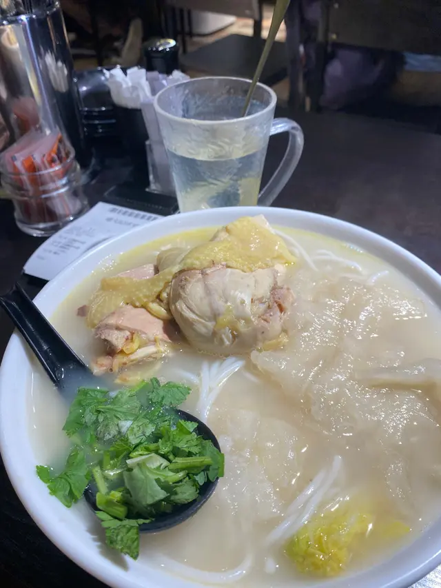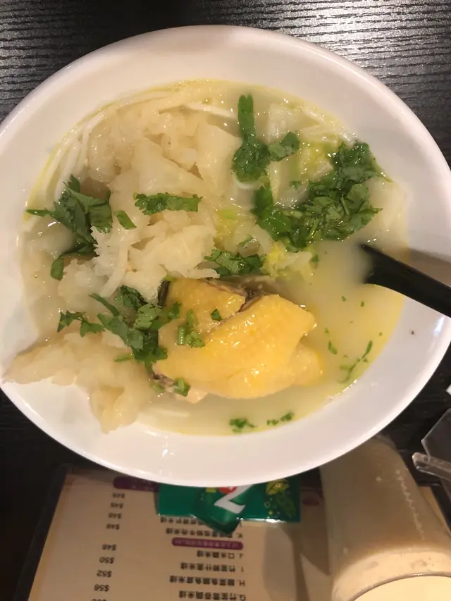 唔錯唔錯。可能平時食開嗰啲都係酸辣米線,呢一碗我覺得非常清新又順口,好好味。花膠大大塊,充滿骨膠原,真係對女士嚟講冇得頂啦。雖然佢係雞湯,但係啲雞食落去係滑嘅一d都唔鞋! 加分! …Read More