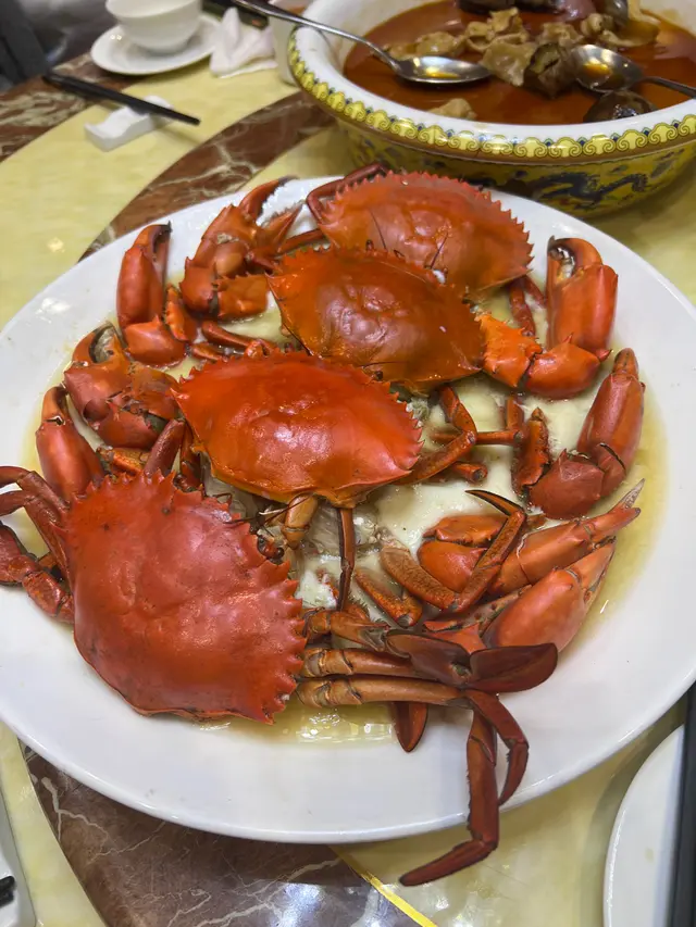 睇食評有好有衰,但朋友係12/23食過好味,推介我地去食,咁我拉咗家人去試下。當晚我地5:45pm到達,但人地未營業,員工食飯中,我地只好係門口罰企。踏正6pm,我地才衝入去,估5到係叫我地7條入廳房坐。我地叫咗”商務套餐” (每位$318加一),有7餸1翅1飯。諗住星期日會多人食,但只得7-8枱客,全部都入廳房坐,所以大廳係吉既~係威係勢先上咗1翅1餸後,我地就開始食法國菜既模式。。。。開始等。。。好。。。耐。。。。才。。。上。。。一。。。碟。。。坦白講,我覺得私房菜係上菜快,等你地快走。可能當晚無乜客,你急佢5急。但要等半粒鐘才上第3道菜,食完又要等20-30分鐘再上第4道菜,直至最後3樣食材才可以10分鐘內連住上菜。真係呆坐到涷和眼瞓。。。睇住不停斷信號既電視節目,由雲岡佛像睇到中年好聲音,大家也由不停吹水變成呆滯。雖然食 buffet都係幾粒鐘,但係可以不停有嘢食,跟我等食既情況真係兩碼子。。。。。我不停倒數仲有幾多道菜未上。。。講返服務態度,係ok。雖然佢地上菜慢,但態度都好,有問有答,語氣溫和。講食物質素,有出色有5掂:1. 雞燉翅(5/10分):翅係好大梳,仲有一梳侍應阿姐弄跌在枱面,蝕!但雞味無乜,失色。。。2. 蝦多士(2/10分):5掂!d 油完全鎖係麵包里,所以一咬就油份全部溢出來。。。。3. 花雕蛋白蒸長腳蟹(10/10分):本來係避風塘炒蟹,但等咗30分鐘,我地出去催過。之後,阿姐拎呢碟蛋白蟹入來,講升級俾我地。哈。。。其實我見到左右廳房遲過我地黎既客,都仍食呢個,我估廚師一齊整,無時間再開鑊炒蟹。不過,係整到幾好食,呢30分鐘等待都值得