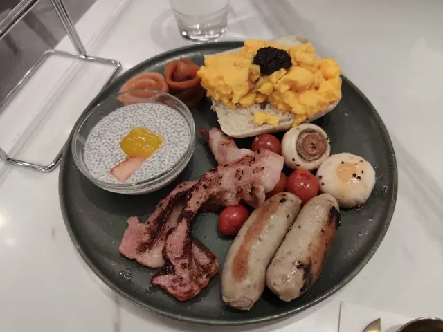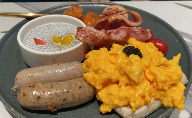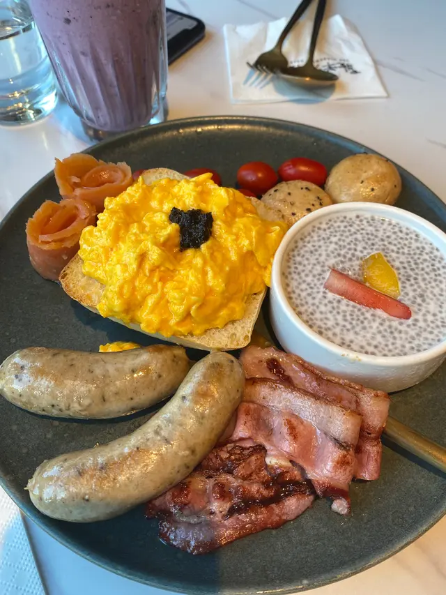 星期一下午,英式早午餐價錢$118+$11.8(8款食物),有意大利黑松露醬炒滑蛋,黑松露豬肉腸,挪威煙三文魚,法國核桃杏脯包,法邊豆,雜菌,蕃茄,Granola希臘乳酪,平均每款$16.2。餐廳提供兩款早餐,有英式和素食,可按自己口味選擇。總結今次係第一次幫襯,有點喜出望外,早餐包南瓜湯和飲品,除咗法邊豆外,食物質素滿意,最愛希臘乳酪,好味。午餐時段設加一收費,可用QR code點餐,坐位坐得舒服,服務態度良好,只是星一至五先有午餐提供。好耐冇試過,食過一次又想食多次,證明只要有質素,下次一定會再見。…查看更多
