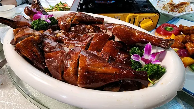 屋企人話有好食中菜,隻燒鵝好食,小菜夠鑊氣。真係咁正!好就試下睇下有幾好食。我哋一到就問我,要唔要冬瓜盅,得返3個。講緊係全場得一枱食緊,一枱剛坐低(即係我嗰枱)。又咁好食?見到個湯勁清,真係好甜,冬瓜盅最適會夏天,超清甜,飲咗暑熱都清晒。金沙美國炸桶蠔,咸蛋黃超香口,蠔又夠鮮甜。荔枝柴燒鵝,未食已聞到荔枝柴香味,皮脆肉嫩,有啖啖煙燻味。豉汁蒸鱔彈牙又滑, 仲有個蟹肉粉絲煲,啲粉絲吸曬蟹嘅味。值得再嚟。…查看更多