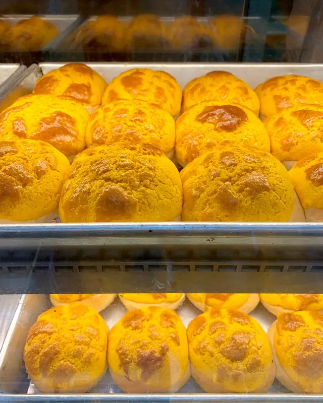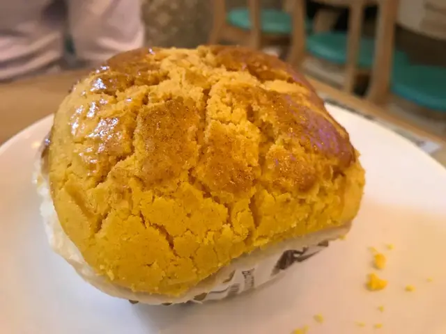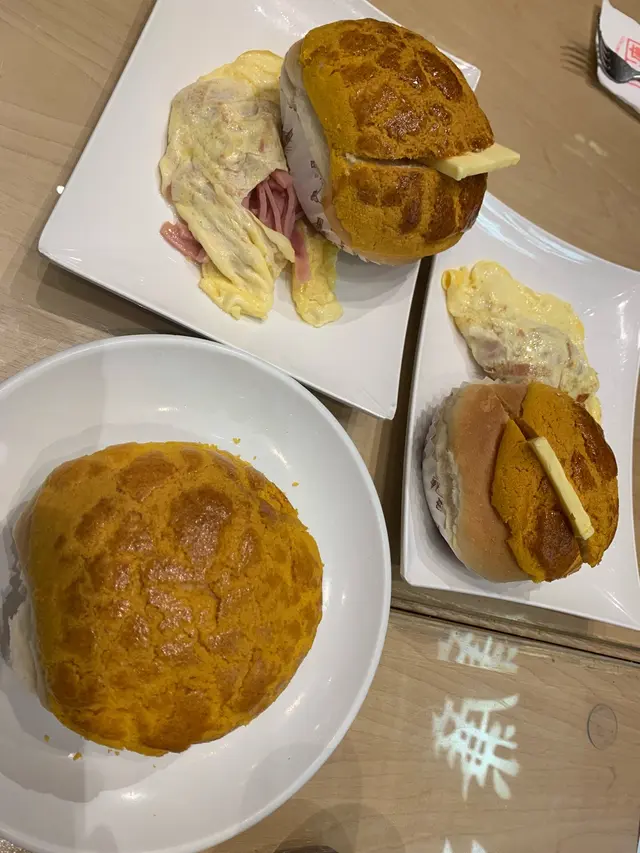 來到灣仔新派冰室,裝潢年輕化,從窗戶可以看見烤好的麵包及派,每一樣看起來都好好吃,而且一直出爐,熱辣辣又新鮮,座位需要搭台,位子不算寬廣,這次來吃午餐和試試有名的菠蘿包,這間冰室很多餐店都結合菠蘿包,利用菠蘿包做漢堡等,應該是拿手之作!豉油汁叉燒煎雙蛋飯 54頹飯系列很快就上桌了,兩片煎蛋蓋在叉燒上,掀開一看,叉燒肉片非常多💥全部是偏瘦,切的厚度薄,吃起來普通,有些偏硬偏乾,白飯份量多,底下還有醬油,煎蛋也是全熟的,吃飽絕對沒問題順帶一提,隨餐的飲料選了凍奶茶少甜,很好喝,茶味和淡奶配合的剛剛好,喝起來順口菠蘿包 8熱辣辣的菠蘿包上桌烤出來金黃色的非常漂亮,酥皮咬下去甜甜的很酥脆,也不易剝落,重點是麵包本體濕潤,不是空氣包,而是有彈性的,整個菠蘿包很美味…查看更多