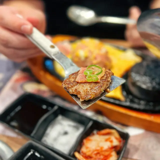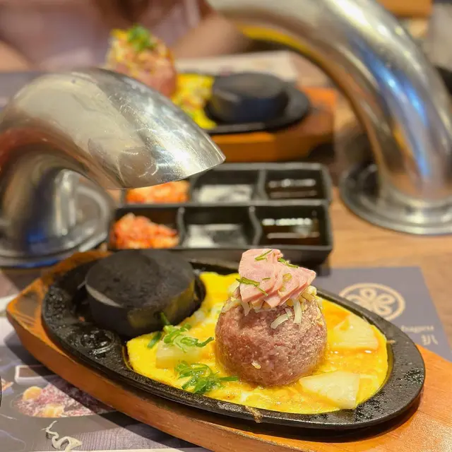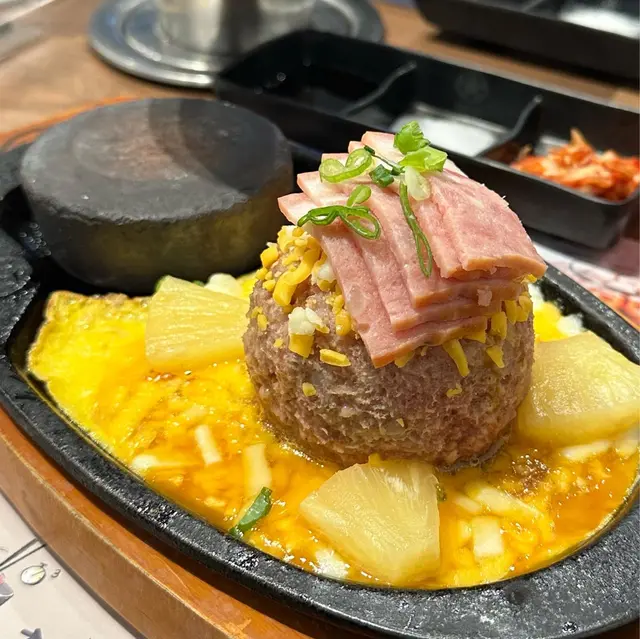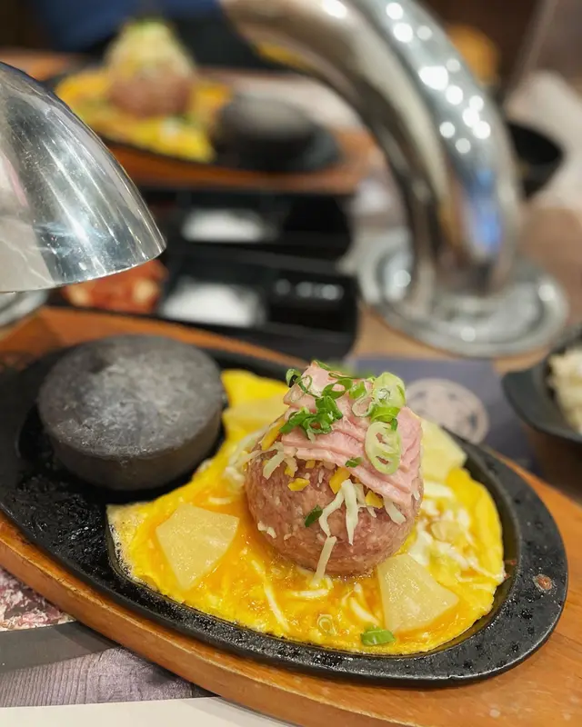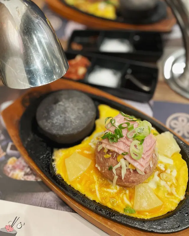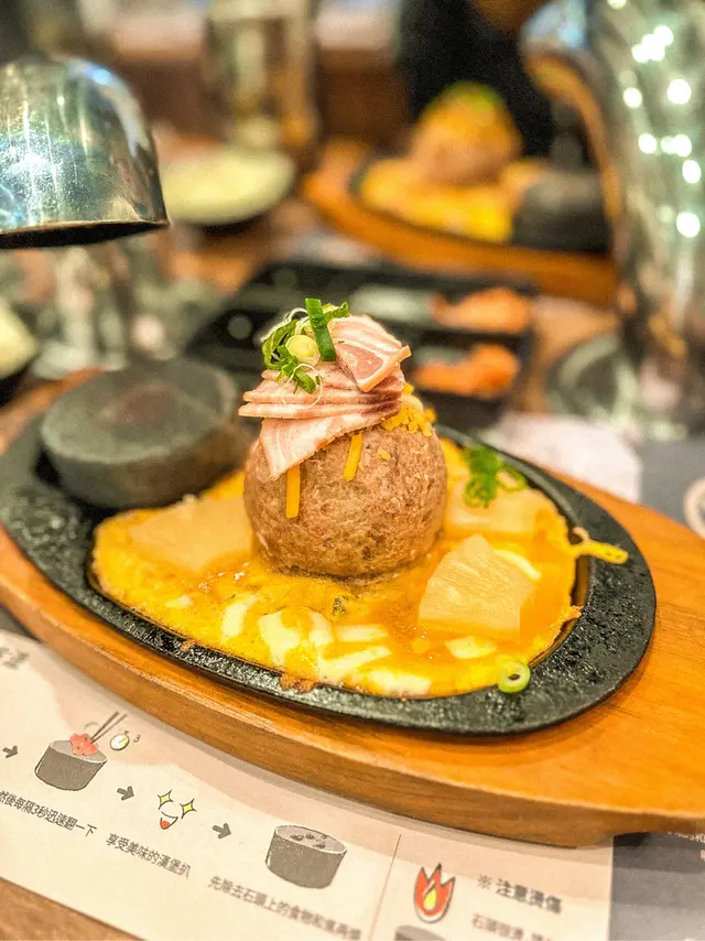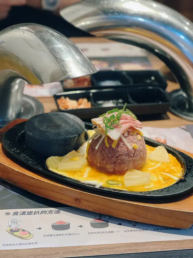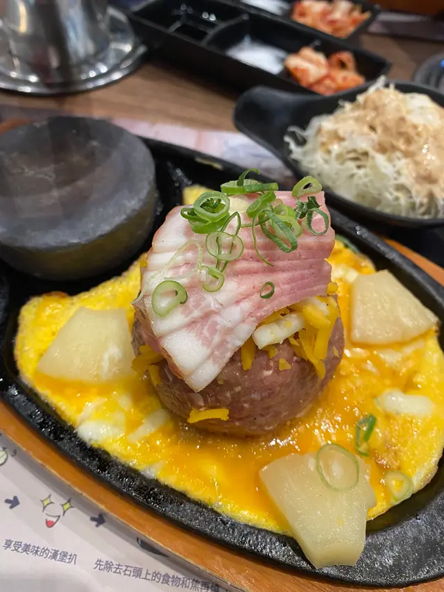 尖沙嘴厚福街食肆林立,競爭激烈下福岡漢堡扒一直都是排隊熱店,這次就來試試到底有什麼過人之處🍴每個人的座位上都配有抽風,另外有需要的話也可取圍裙使用。▫️兩人套餐 (ver.4)餐廳使用QR code下單,選擇困難的我們就直接點了兩人套餐。點餐後先送上醬料盤、味噌湯和清新爽脆的椰菜絲沙律佐胡麻醬🔸芝士蛋蒜和牛漢堡扒鐵板很快送上~第一次來吃,所以店員都有指導一下料理方法,先用小鐵鏟取部分漢堡平舖在熱石上再輕輕壓扁🤏🏼因為熱石超高溫的關係要每3秒翻轉一次,將和牛漢堡豐腴的油脂完全迫岀,喜歡焦香一點的可以多煎幾下,外焦內嫩仍保持 Juicy 口感!吃到一半的時候店員也有主動來更換熱石,自己動手料理感覺蠻有趣的👩🏻🍳 而且也很好上手🔹菠蘿煙肉和牛漢堡扒這款同樣扎實!多了菠蘿和煙肉的配料,吃法上帶來一點變化,吃完漢堡再吃片烤菠蘿很解膩。漢堡扒本身惹味多汁,再佐以鹹香迷人的芝士,所以我們幾乎沒用上醬料盤去調味🔸芝士泡豚丼套餐還有一個丼飯,超大一碗二人分享剛剛好。裡面堆滿了泡菜和豚肉片,加上拉絲的半溶芝士非常邪惡.ᐟ.ᐟ.ᐟ 🔹飲品附兩罐罐裝飲品,養生的我們就選了無糖的烏龍茶和樽裝水 💧 …查看更多