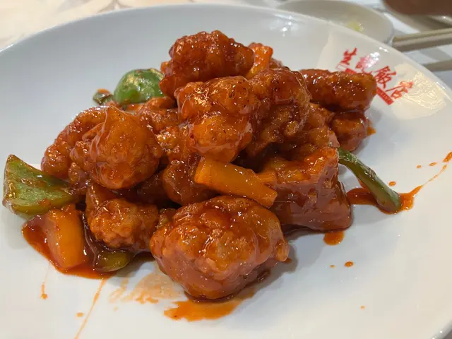多時不見的團友相約一起飯聚,飯局選在生記飯店,因為團友都是識食之人。飯店明亮開闊,當晚全場爆滿,幸好被安排在一角飯聚,人多仍然不覺太過嘈吵。柚皮色澤金黃,外型完整,雖然蝦籽用量不多,但柚皮燜得軟腍入味,鮮香濃郁。生炒骨的選材肥瘦適中,排骨炸得外酥內嫩,調味也酸甜可口,配菜有軟甜的菠蘿和鮮脆的青紅椒,使口感更加多樣。蓮藕餅外皮微焦而內饀軟中帶彈,蓮藕粒是否手磨無從得知?但蓮藕的爽脆顆粒感卻清晰可嚐,讓人感受到廚師的用心與手藝。馬友魚多油兼肉滑是十分喜歡的魚種,清蒸馬友魚也是家中常吃的菜式,但這裡的出品過鹹,比吃鹹鮮馬友還鹹,實屬意料之外。釀鯪魚是手工菜也是預訂菜式,為了保持鯪魚外觀的完整性,製作複雜考究,釀鯪魚皮脆肉彈,難得朋友多可以一起分享,當然不可錯過。鮮奶燉花膠是期望值十分高的燉湯,因為以鮮奶作湯底比較稀少。從上桌的湯料中清晰可見所用之肉類材料十分豐盛,可是材料的鮮味並未在湯水中顯露出來,有點可惜。豬膶浸枸杞是招牌菜之一,厚切更容易感受到豬膶軟滑帶沙的口感,枸杞湯清甜不油膩,是豬膶的良配。百花雞是預訂菜式,賣相絕對是十分之作,百花雞上桌時英姿勃發,釀滿百花的雞件排列整齊,雙翅展開地雄霸整個大盤,灑上菊花瓣更為菜式添鮮。至於味道和口感便有點不及預期,由於雞件是蒸煮而成,雞皮有點軟和黏膩,百花由蝦膠及雞蓉混合而成,蝦膠比例佔多,雞味自然較少。蒜蓉炒豆苗水準正常,與家常烹調的豆苗並無兩樣。豉油王銀芽炒麵份量有點少,以價錢及用料來衡量,便顯得有點貴。…查看更多