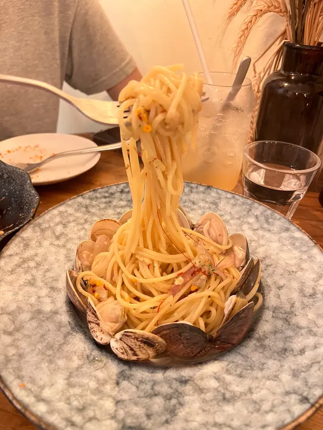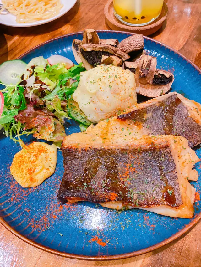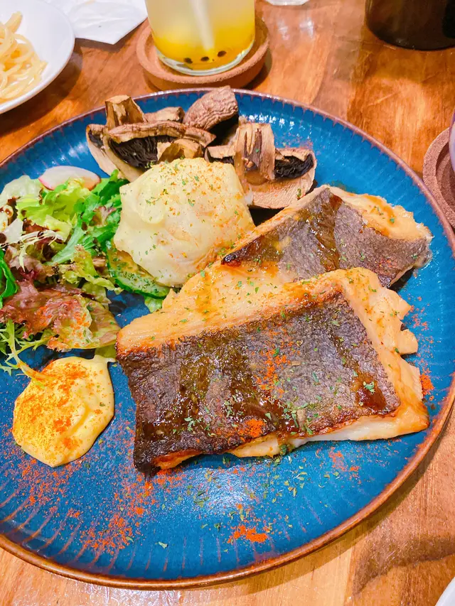 距離太子站數分鐘的路程,交通方便。餐廳行文青風格,裝修簡約,坐位舒服。今次選了2人餐。蕃茄湯蕃茄味香,每啖清甜,仲有蕃茄蓉,提升口感!味噌烤牛舌和風沙律牛舌切薄片,入味又夠腍。沙律菜新鮮,配上醬汁,開胃非常。西京燒比目魚比目魚好大塊,外皮爽脆,魚肉嫩滑,肉香多汁。配菜仲有烤大啡菇、沙律菜和薯蓉,十分豐富。蒜油花椒蜆肉意大利面豐富的蜆肉伴碟,蜆肉大只,只只新鮮。意大利面口感彈牙,仲帶著香濃的蒜香及花椒味。Banana cheese cake香蕉味重,芝士味濃,層次分明,仲帶點香蕉肉,甜而不膩。Passion fruit soda梳打水冰凍,熱情果味濃,是清新之選。Butterfly pea lemonade soda吸引的紫色蝶豆花特飲,配上檸檬片,賣相一流。餐廳好有氣紛,服務員態度有禮。唯地方唔算好大,或需要多點時間等待入座。…查看更多