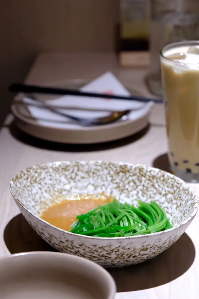 每次想念台灣夜市的味道時,總會忍不住搜尋香港的台菜館解饞。這次來到海港城「台北棧」,竟然吃到了讓人驚豔到拍桌的道地滋味~馬上就來分享這段舌尖上的台灣旅行👉🥬 蒜泥台灣水蓮~香港少見的台灣特色蔬菜,水蓮本身無味但清脆爽口,蒜香濃鬱卻不嗆喉~👍🌶️ 五更鴨血寬粉絲煲~必點推薦!!!鴨血嫩滑,吸飽麻辣湯汁後咬下去直接爆漿,寬粉絲Q彈有嚼勁,湯底麻而不燥,越吃越上頭的那種辣,最後加了一碗白米飯連湯都喝光~😋🤤😍👍🫔 手撕牛𦟌酸菜蛋餅~內餡飽滿到差點包不住,手撕牛𦟌肉香濃鬱,搭配酸菜解膩又提味~👍🍧 伯爵茶凍芋圓配粉粿 、伯爵茶凍芋圓配仙草 ~甜品控絕對要雙殺,伯爵茶香超濃鬱,芋圓地瓜圓都是手工製的嚼勁十足,粉粿透亮Q彈,仙草滑順帶甘香,搭配黑糖冰底甜而不膩,吃完麻辣鴨血後來一碗簡直是天堂級享受~🤤😋😍📍 **餐廳資訊**👨🍳:台北棧Check In Taipei🏠:尖沙咀海港城港威商場2樓…查看更多
