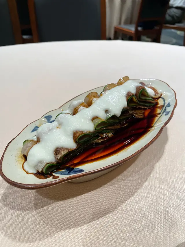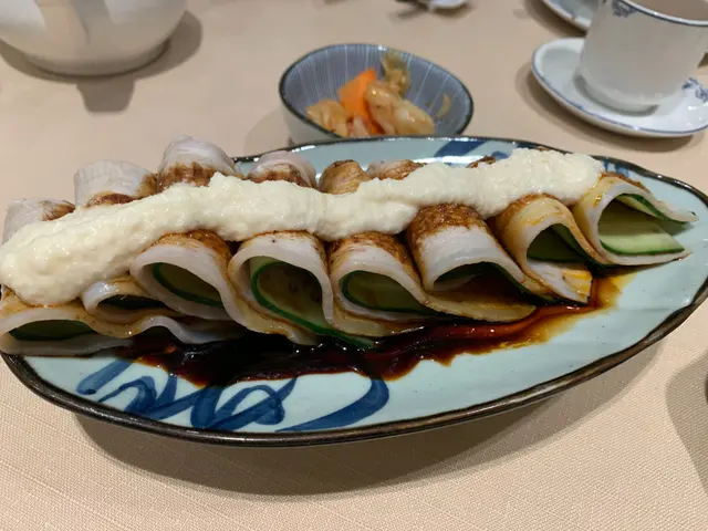 餐廳:三希樓地點:銅鑼灣利舞台廣場菜式:川菜餐牌:涼菜小食、明爐燒味、鮑參翅肚、湯羹、河鮮、海鮮、家禽、牛肉、羊豬肉、乾鍋系列時蔬、粉麵飯、甜點、飲品一坐低就有兩款小食,包括辣椒雞軟骨同花生。蒜泥白肉 $148 另加一蒜泥白肉一客八件,擺盤好靚。白肉片包住薄薄青瓜片,食落唔覺太肥膩,淋上辣油,味道微辣。面頭加上白色滑溜蒜泥醬汁,打成泡沫既蒜泥,原來可以加添香滑口感,好有特色。招牌酸菜魚 例 $428 另加一招牌酸菜魚例都好大兜,好多連皮魚片,非常滑溜又有口感,配有好多秀珍菇同酸菜,加有蔥花。味道都頗辣同酸,好夠味。四川寬粉 加$38 另加一加埋滑溜帶點咬口既寬粉更加好食!五椒焗海中蝦 $360 另加一五椒焗海中蝦用有蓋煲熱辣辣上枱,一客六大隻連殼大蝦,加有滿滿胡椒。蝦殼好脆,可以食埋,蝦肉鮮甜,味道少少辣,胡椒味好香,好惹味。三希樓吊燒雞 半隻 $248 另加一三希樓吊燒雞賣相一流,雞肉好香,燒得皮薄脆,而肉嫩帶雞味,調味調得鹹香,伴有少少沙律菜解膩同豉油提味。好食到停唔到口。啫啫唐生菜煲 $158 另加一啫啫唐生菜煲真係啫啫聲上枱!新鮮生菜加有豐富蝦醬同麵豉醬仲加有蝦乾,估唔到蝦醬同麵豉醬加埋味道係超級惹味,餸飯一流。即撞豆腐花 $88 另加一即撞豆腐花成個木桶上,可以食到四碗!豆腐花非常滑溜,另上黃糖同糖水比你自己調味,好食之餘又唔會太甜!棗茸千層糕 $48 另加一棗茸千層糕賣相不俗,一客5件排到成粒星星咁,肉眼見到有五層,聞到好香紅棗味,唔會太甜,感覺養生。今餐食物質素好高,餐廳環境高檔,裝修精美,服務員態度有禮,換碟勤快。一行三人都食到大大大滿足!…查看更多