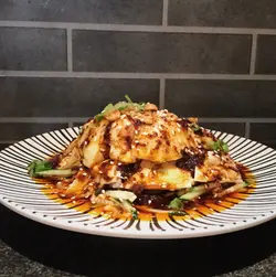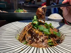 一月中星期五中午,天色陰暗。星期五午餐基本上都是我跟主管的指定動作,昨天他突然心血來潮,要我用一晚上的時間去看看有沒有甚麼中菜是我會喜歡吃的,這麼大的難題,惟有求助點評。在公司附近找到這家川菜,原來主管已經來過幾次,我們就敲定吃這家。門面已經充滿中國風,裡面滿滿的古典裝潢,一抬頭就是大紅燈籠,很有回到了古代中國繁華大街的感覺。由於主管已經來過,而且非常愛吃中國菜,所以點餐這任務就交給他,省卻想來想去的煩惱。小吃點了蒜泥青瓜,青瓜醃得夠入味,外面吃的通常是青瓜不夠味而且蒜歸蒜,主管問服務員要了黑醋,更把所有味道提升,很開胃。吃麻辣鍋當然要點啤酒,我們一人要了一杯Hoegaarden,而且是大杯的,夠爽。主食要了經典香辣鍋,原來是麻辣乾鍋,大部分我們點的都是蔬菜,其中蓮藕片讓我意想不到,薄片脆,然後雞胸肉很嫩,聞著麻辣香味,跟一大堆辣椒一起炒真的越吃越不能停下來。這家餐廳一定會成為我們經常去的飯堂。…查看更多