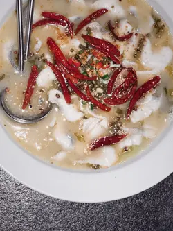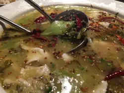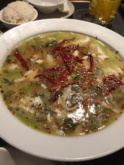 門面設計具有中國特色,室內裝潢古典雅緻。我地一行四人,可以大快朵頤。呢個環境要不停打卡影相蒜泥青瓜,開胃可口,食落仲十十聲。而且蒜泥味好濃郁,中意蒜泥既朋友可以試下嫁口水雞味道出人意表;味濃、略麻、微辣。我唔係好食得辣,食下食下都就黎食哂成碟咁濟酸梅湯份量係一揸嫁~!!!飲極都仲有而且味道唔係死甜,酸酸甜甜夠哂開胃酸菜魚超級大碟,魚片香滑,酸菜吸收了魚香,不可錯過。酸辣的湯底也是一大特色,連喝了好幾碗,大呼過癮。需要注意的是有少量魚刺,進食時需要小心。至於招牌菜乾鍋,我地叫左秘製醬香味。醬料具風味,非常推薦。我們選了大約七八款食材。當中魷魚和豆皮尤其出色,入味且爽口;豬頸肉有嚼頭,魚腐大大塊,cp值高。最後甜品是紅糖滋耙,糯米香極濃,外層香脆內裡煙韌。…查看更多