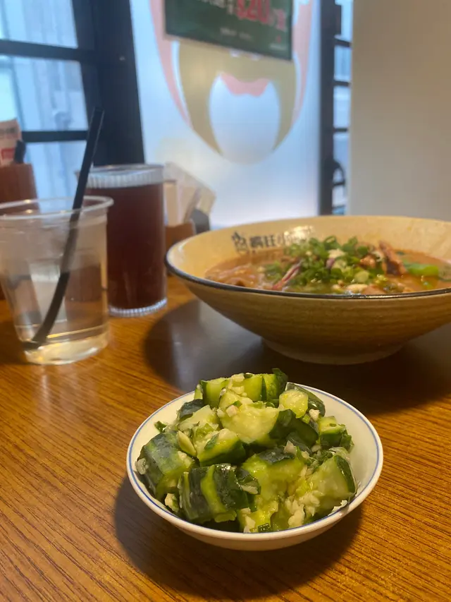 有個friend推介我嚟中環呢一間瘋狂小面食川菜💞💞位置就喺直中環Donki後邊南記隔離嘅佳德商業大廈,餐廳裝修充滿古色古香嘅感覺🥢🥢今次我哋就揀咗一個BB辣度嘅瘋狂肥腸麵套餐 $109🤤🤤呢個餐就包咗一碗肥腸麵🍜🍜🍜一份蒜泥青瓜🥒🥒一杯烏梅汁😋😋再加個紅棗銀耳湯😍😍 肥腸麵嘅麻辣適中食落個身暖笠笠,肥腸夠晒軟糯,份量亦都相當多😋😋蒜泥青瓜可以中和個辣到👍🏻👍🏻蒜味濃郁,再加多杯酸酸甜甜嘅烏梅汁😚😚😚最後食返個凍嘅紅棗銀耳湯做甜品作結,真係超滿足🤩🤩🤩另外我哋都揀咗個蕃茄牛肉麵套餐 $98🥰🥰呢個餐就包括蕃茄🍅🍅牛肉麵🍜🍜冰糖雪梨汁🍐🍐同埋成都老冰粉😋😋蕃茄湯鮮味十足🍅🍅🍅完全冇嗰種青草嘅味道🥗仲有少少豬骨湯味🤤🤤成個蕃茄湯超濃郁🍅牛肉鮮嫩😍冰糖雪梨汁勁潤喉👍🏻👍🏻最後再配埋一個有晒花生🥜芝麻😘提子乾嘅成都老冰粉,凍凍地嘅冰粉,味道非常夾🤩🤩🤩食飽仲可以去附近Donki行街消化一下🛍🛍…查看更多