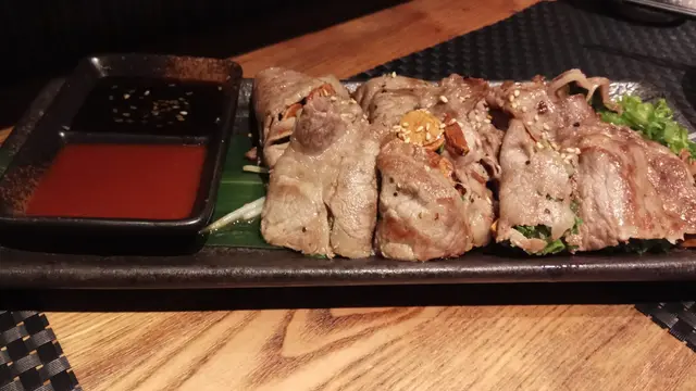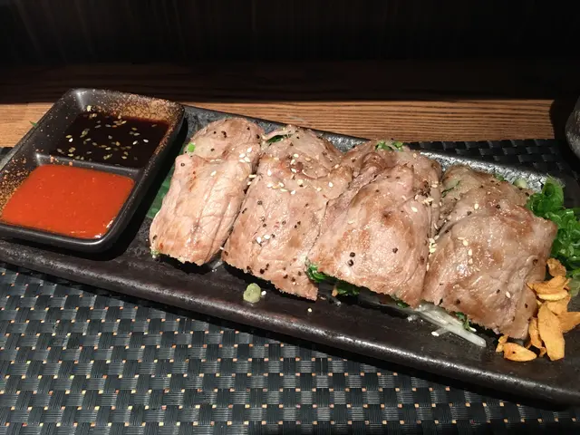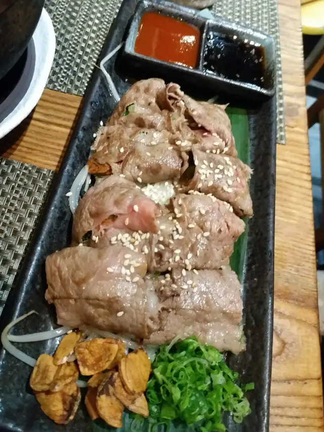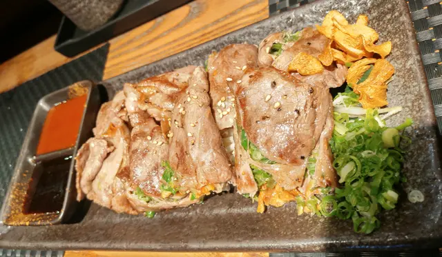 朋友今晚帶我食好野,話係好正中的日本料理。嵐山日本料理位於尖沙咀棉登徑內,係K11附近,所以並不難找。店內有吧枱及長枱,我們7點到,差不多已經滿座,所以好建議訂位。首先,我們叫左刺身三文魚刺身$38/2件、油甘魚刺身$68/2件、甘蝦刺身$78/4隻刺身鮮甜新鮮,三文魚好厚身,不用沾任何醬汁也有自身甜味。池魚皇$48/件、鯛魚$20/件、金目鯛$58/件池魚魚肉較爽口,加上少許薑,令鮮味更出;肉質厚實,本身魚油不多,加了蟹籽及蔥令魚味更出;細膩肥美的金目鯛,普通加上醬油已經足夠。蒜片安格斯薄燒$148店員推介是招牌菜,安格斯牛味濃郁,包著大量蒜片香蔥,點少少醬汁,食到舔舔脷。肉片下面的芽葉吸了牛肉汁的精華,牛肉肥瘦適中,加上醬汁一吃更美味。串燒日本黑豚肉$38、免治雞肉棒$28、蘆筍$28。燒物火喉控制得好,豚肉及雞肉棒燒得夠嫩,再配上生雞蛋黃鼓油,令肉質更滑。煎沖繩餃子$58餃子外皮煎得脆卜卜,內裡肉汁很多,很juicy!手打泡菜黑豚肉石頭鍋烏冬$118一點點辣的湯帶有一點甜味,可以當湯入一大碗。加入打半熟蛋拌混連手打烏冬吃更爽口彈牙。總括黎講,雖然有小小貴,但是物有所值,食物夠新鮮,味道不會偏淡或偏咸,質素令人驚喜,值得啊!而且好日式建築感覺,餐廳有bar枱亦有餐桌,好岩朋友聚餐。…查看更多