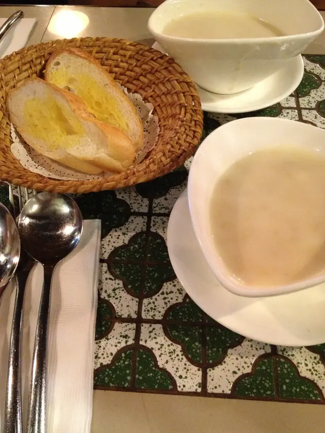 蘑菇忌廉湯加 $10 配酥皮他推介必定要加酥皮,雖然酥皮是外來貨色,並非自家製出品!加上酥皮把平平無奇的忌廉湯生色不少!