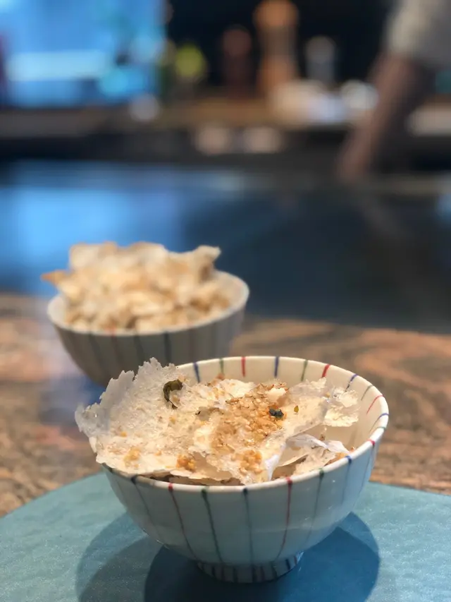 自從上次試過鐵板燒之後對鐵板燒念念不忘,朋友知道我愛上鐵板燒都紛紛向我作出推介,我同老公研究後決定去試位於銅鑼灣開平道Cubus 8樓的鐵板燒雪舟。我地十二點到達當時剛開始營業,門面有大吊燈又有聖誕樹,已經好有聖誕氣喇,店內的裝修以時尚雅致為主,除了一排長長的鐵板可供幾位師父同時獻技外,也有一些餐桌及房是供家庭客或一班朋友圍埋一齊進餐。午市餐牌都好多選擇,有鐵板燒及壽司餐,老公選咗一份商務午膳($628),而我就選了一份雪舟鐵板燒午餐($318),同好多高級餐廳一樣,午市價錢比晚市親民。每組食客的食材都由一位師父負責主理,我選的雪舟鐵板午餐有: 沙律•小鉢~茶碗蒸~帶子•大蝦~日本黑豚扒~炒野菜~味噌湯~蒜蓉抄飯~漬物~甜品~咖啡/茶沙律•小鉢沙律是提子乾和紅蘿蔔絲拌勻,甜甜的好特別。小鉢是金菇天婦羅,粉漿炸得鬆脆好似一把扇咁,外乾內軟,金菇仍保留著水份。師父喺我地享受緊第一道菜時已經開始準備茶碗蒸,好快已經有熱騰騰嘅茶碗蒸品嚐。茶碗蒸純粹以蛋為主,在蛋內沒有添加其他配料,蛋蒸得好滑,比豆腐還要滑,蛋的表面鋪了一層汁,鹹鹹的增加茶碗蒸的味道,簡單好味嘅茶碗蒸。帶子•大蝦師父預備帶子和大蝦,他先把蝦用鏟子把蝦分解去殼,蝦頭和抓留下,一邊看著蝦變色一邊聞到陣陣撲鼻的香味,最後師父淋上了芥末鼓油就可以吃了。先說大蝦,蝦肉彈牙之外最特別是蝦抓,師父將蝦抓煎得非常香脆,若閉上眼吃你並不會估到是在吃蝦抓。帶子並不是全熟,外面煎香內裡仍保留著帶子的鮮甜味,入口軟腍有陣陣海水味,沾上芥末鼓油吃有點點辣是另一番感受。日本黑豚扒黑豚扒有150g份量不小,師父用鹽和楜椒調味,把黑豚扒二面煎香再細切,伴上特制的蘿蔔蓉便完成了。看似步驟簡單但若火喉控制不好便很容易會使黑豚扒變老變韌,浪費食材。黑豚扒入口有彈性,肉質軟腍嫩滑,肉味甘香,可能是六成熟的關係,肉汁仍鎖在肉裡每口都很juicy,不用沾上醬汁都已經很好味了。蒜蓉炒飯這個炒飯非常特別,除了用蒜蓉雪菜特調味外,師父會預留部份飯來泡製一張薄薄的米紙! 看著飯粒變成米紙真的好驚喜,米紙好脆又有帶有點點鹹香,和飯一起吃有雙重口感,讚!炒野菜日本野菜好爽甜味噌湯•漬物味噌湯有很多白蘿蔔等配料,味道不會很鹹,清清地入口很舒服。咖啡咖啡沒有苦澀和酸味,很不錯!冰條焦糖布甸自家甜品很特別,焦糖布甸就吃過但製成冰條來吃便是首次。表層的焦糖已經冰得有點磨砂狀,入口好似在吃雪糕,口感較雪糕結實而且帶點焦糖味,很特別!師父每道菜除了解釋之外還會主動和我們交談,感覺好好,最後還送上飛驒手信給我們,真的好窩心。我地邊吃邊傾好快就渡過了一個美好嘅午宴。…查看更多