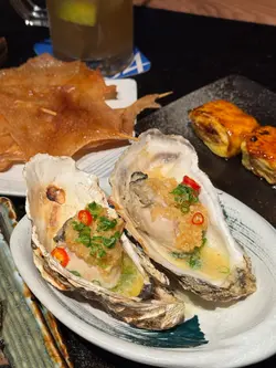 近日約咗朋友一齊去旺角燒烤堂食串燒,可以係旺角搵到一間款式新又親民價嘅串燒店,真不錯 ~餐廳新裝修感覺時尚,地方闊落,氣氛很好,環境舒適寫意。鹽燒鮮三黃雞腿肉 $28 散發陣陣燒烤香氣,帶少少鹽味,雞肉嫩滑有肉汁,好香好惹味。鹽燒原塊雞皮 $22 雞皮都好大片,燒得好脆卜卜,加左調味粉令口感更有層次,非常惹味。鰻魚炒飯 $58鰻魚燒烤香脆,肉質鮮嫩,炒飯調味剛好,好足料,鑊氣夠。蒜蓉燒日本廣島蠔 (兩隻) $48 燒蠔都好大隻,入口嫩滑好新鮮,配搭超多蒜蓉,下次一定要再點。牛油果豚肉卷 $28 豚肉香脆,包住半溶嘅牛油果,食落入口即溶,口感順滑。豚肉日本蘋果卷 $24 豚肉烤至香脆,口裏充滿油香,豚肉鮮嫩,包住清甜爽口嘅日本蘋果,減輕油膩感。鹽燒豚肉荔枝卷 $22 豚肉散發燒烤香,外脆內嫩,帶鹹香味,包住清甜嘅荔枝,口感清新。鹽燒白鱔 $48 白鱔肉質新鮮,口感嫩滑,用上鹽燒烹調,提升層次味道。椒鹽燒多春魚 (4條) $32 炸至金黃酥脆,內裡魚卵豐富,用上椒鹽調味,風味十足。香草蒜蓉包 $18麵包烘至香脆,蒜蓉濃郁味㪚發出來,外脆內軟,亦充滿淡淡香草氣味。冷泡無糖白桃烏龍茶 $18 入口清爽,帶點白桃香氣,食左多款串燒飲杯冷泡白桃烏龍茶,即時解渴解膩。…查看更多