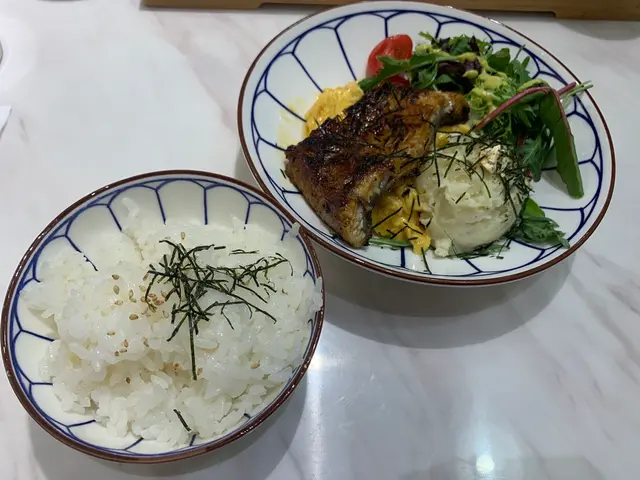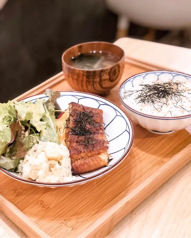 之前已經留意到鰂魚涌分店好受歡迎,已經好想試而家觀塘都有分店喇,黎開呢頭梗係要試下啦❗️位置喺一工業大廈入面,唔算難搵室內光猛,裝修簡約有文青味道,感覺relax見到有唔少花藝裝飾🌷🌸💐原來店鋪除左cafe之外仲會舉行workshop架All Day Breakfast粉絲嘅我當然要試下呢度嘅和式版本最特別係蒲燒鰻魚🐟皮燒得香口,肉質肥美炒滑蛋用左日本蛋🍳蛋味香濃蛋加入味噌調味,口感特別豐富仲有一大球紫薯沙律🍠香腸,牛油多士等等食完好滿足友人都好喜歡食鰻魚但又想有米飯落肚呢度都有鰻魚滑蛋定食滿足到定食一樣有蒲燒鰻魚同炒滑蛋,紫薯沙律等等配珍珠米白飯🍚粒粒分明另外仲配一碗日式餐湯,內有昆布,菇🍄友人話感覺清新🌱最後當然要嘆返杯咖啡鮮奶抹茶🍵好香表面有滿滿嘅綠茶粉增加口感底下係🥛鮮奶抹茶好滑至於凍嘅cappuccino咖啡味濃☕️係炎夏唔錯嘅選擇Cafe仲有其他嘅定食同甜點而且全店嘅食物都唔落味精相信實有機會再黎悠閒一番…查看更多