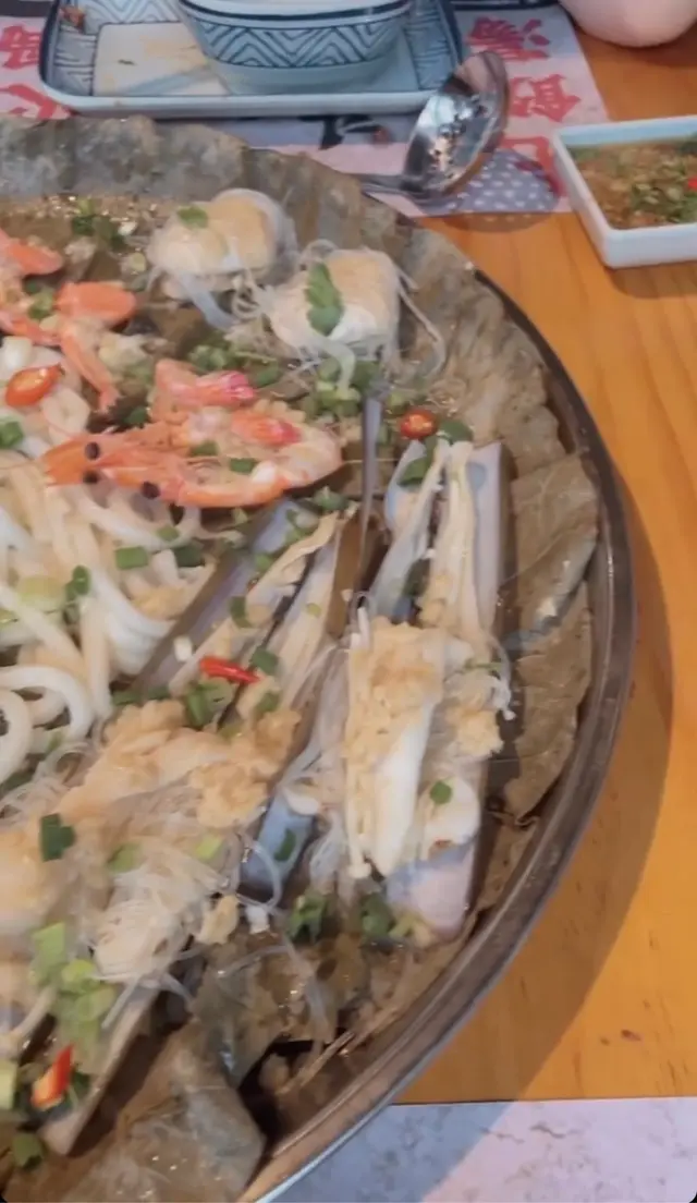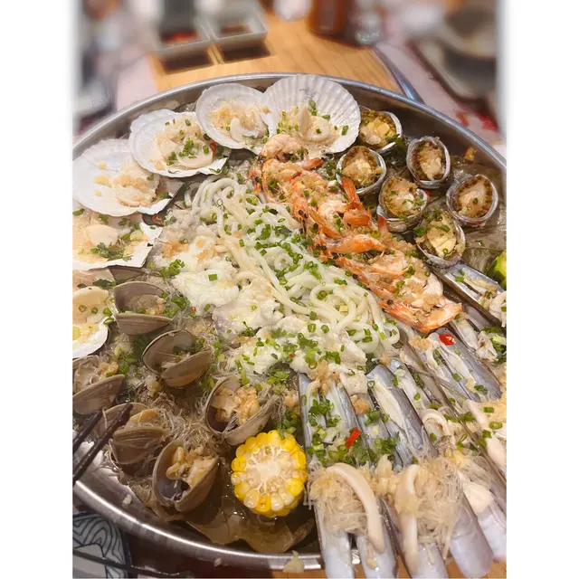 再見老朋友,所以一早預訂咗呢間餐廳,希望大家可食得開心又滿足! 一上到去就知呢間餐廳好受歡迎,基本上座無虛席,好在我哋有預約到!😎一入座,店員已經事不宜遲雞煲奉上!我哋跟足佢個指示,好認真地計時⌛️炒雞🤣,所以啲雞唔會變到好乾。雞煲配料好足,所以食落好惹味,令人食指大動🤤! 同埋佢唔會俾晒啲骨同雞皮,有好多雞肉,非常好!雖然雞煲係任食,不過我哋有啲廢,淨係添咗一次雞。然後到咗食海鮮嘅環節! 盤海鮮一上枱,令人驚嘆,完全係海鮮晒你冷🤣,佢仲要係按人頭計份量,所以每種海鮮都人人有份,永不落空! 好正!😆 至於味道就係簡單用蒜蓉粉絲蒸海鮮咁味!去到呢個位,其實都有啲飽。不過仲有邊爐要打!我哋揀咗養生燉湯湯底,入面有隻竹絲雞,係好足料嘅老火湯。佢有兩款肉揀:手切牛頸脊and 黑豚肉,都係任食。 牛肉好嫩滑,而黑豚肉唔會好重豬肉味同腥味,都十分出色! 其實仲可以去雪櫃攞其他火鍋配料,不過我哋實在係太飽,所以放棄了!總結,呢間餐廳性價比好高,唔止好食,價錢方面都係差唔多每人$300! 十分推介!…查看更多