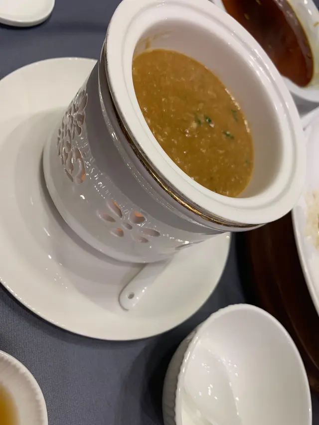 香港的寧波菜館唔多,剛知道有間「甬府」,原來兩年前已經低調地在灣仔落户,並立刻獲得《香港澳門米芝蓮推介》。 來頭不小,總店在上海連續四年獲得《上海米芝蓮一星》名銜。創辨人翁擁軍先生,精通各類寧波食材,微調追上時代,造就了上海「甬府」的成功。 寧波菜出名精緻,屬八大菜系中的浙菜,依山伴海,食材選擇多元化,以鮮、鹹、臭、甜、糯滙於舌尖而聞名。以鹽提味增鮮,鹹鮮味足而不過鹹。 香港的「甬府」位於灣仔這個富豪飯堂社區,是龍爭虎鬥、或是互相協調呢?作為食客,最好就是價錢可以變得親民一點,現在終於俾我等到了。 甬府最近推出,初味餐單 $4,888/4位,包括前菜 (四味)、主菜 (六道)及點心 (一道)。如欲酒配方盡興,可加$618/位,店方會為客人選配一款香檳及兩款葡萄酒配搭菜式。 位於寧靜的街道,到埗卻見寬敞門面顯氣派。 裝潢雅致豪邁,樓底極高,皆因延伸至一樓,而樓上全部是貴賓房間;我們散客坐大廳,枱數不多,尚算自成一角。 初見甬府· 初嘗甬味餐單 ($4,888/4位,適用於中餐大廳) 前菜寧波㸆菜· 手撕鰻筒· 泡制菜梗· 招牌十八斬首三款是從來沒有見過的菜式,不過先講最搶鏡的十八斬。 招牌十八斬(例)鮮橙色的蟹膏非常耀眼,膏下半透過生肉看來水嫩,擺設整齊如朵花,不過算一算不只十八件,也許最頂兩件多加了幾刀!豐富的醬汁深褐顏色,嗅到醋的味道,向來吃蟹都是配蟹醋汁。 蟹肉保存水份,蟹膏豐香飽滿,特別醋醬汁透出甜味,我非常喜歡,入口即化,膏香甘甜鹹鮮合一,透出蟹肉鮮甜味道,好吃至停不了口。 生吃為何唔怕有菌呢! 首先「招牌十八斬」必須選用冬至前後當造的東海梭子蟹,水質保證,說來已是去年的蟹,但甬府運用現代冷凍技術,捕捉之後馬上於零下196度液態氮封凍保鮮,處理手法並起到殺菌作用,因此可供全年及送達香港食用。 手撕鰻筒 配 玫瑰醋理應先吃,因為味道相比淡薄,以接近兩斤重東海鰻魚,鹽漬入味再以風吹乾而成。 我覺得鰻筒肉質及味道似澳門的馬介休,細緻緊密,鹹香開胃,與在香港吃慣肥美鱔肉完全不一樣,非常適合佐酒。玫瑰醋有助平衡鹹鮮之味。 寧波㸆菜及泡制菜梗令我增長見聞,口感上有新體驗。寧波㸆菜烏卒卒的㸆菜,入口卻非常嫩,相比類似的菜乾及梅菜水份多,少少算少少甜,並不死鹹,竟然是幾好吃!據說製作過程經過風乾及濃汁餵飽。泡制菜梗泡制菜梗看似椰菜花啲莖,食味幾得意,非常爽口,鹹鹹地之外,竟然有點辣,後勁十足。Champagne delamotte blanc de blancs 150ml因為四款前菜味道濃郁,所以是侍酒師特意配上這一支充滿花香及甜美的香檳,口中鹹鮮之味瞬間被中和,變化討好。 主菜蔣公芋艿羹邪惡但驚艷,原來芋泥可以鹹食!本來只認識潮州甜品芋泥,知道他以大量豬油製造向來卻步,食味我亦不太喜歡,但今晚「甬府」令我對芋泥改觀,做得真是出色。最主要是吃到肉的香,高湯的醇,原來秘訣是用了上乘的寧波土黑豬鍊出豬油,所以醇美。 以大量豬油渣及芋頭混製而成,質感如期望中棉滑,以燭火保溫上菜,否則油會凝固,但久熬會燶,掌握時間快吃。 脆皮水潺水潺即九肚魚,因為產於江浙東,這九肚魚肉質極嫩,骨質亦軟細,相比香港一般吃到的優質。 而脆漿特意加入東海海苔粉,令這道脆皮水潺,更加香脆鮮味,出色之處更在入口即化的魚肉,照片中左方可見,魚肉半溶似牛乳,口感極佳。 雪菜筍絲燒白鱗鯧白鱗鯧是非一般的䱽魚,因為同樣來自東海,肉質綿密細柔,香港吃到的倉魚比對下變得粗糙了!但留意魚骨同樣幼細而且不少。 雪菜亦是寧波貨,少鹹但爽脆更合時宜,喝一口奶白色魚湯,一口魚,不愧為當地最代表鹹鮮風味的名菜之一,不過,如能保溫上可以更理想,因為魚湯始終是熱騰騰的窩心。 Domaine Fabien Coche Meursault les Gruyaches 2015 150ml配上白酒,酸度相比剛才的香檳減了,但酒香強了,芬芳果香,少少似菠蘿、檸檬、牛油的混合,餘韻短。 海味麻辣豆腐堂前把豆腐倒進熱鍋,看到沸騰的樣子。 可以說是麻婆豆腐升級版本,因為加了鱘龍魚筋、海蔘及蝦干,吃起來有咬口,添加鮮香,麻辣味香而不霸氣,豆腐非常滑。 紅燜拆骨豬手需要長時間預備,據說燜足四小時,入味後再去骨上檯,然後切成一口份量。 汁濃豐富,豬皮爽彈肥美,非常腍嫩,啖啖膠質,配小饅頭吃。 Lucien le moine nuit Saint George 1er Cru les Vaucrains 2016 75ml這時候奉上2013年的法國紅酒伴肉,酸度略高有助減膩;紅酒順滑濃厚,餘韻略長。 清炒時蔬看似普通,其實選取了最嫩的小棠菜,以高湯餵炒,水份十足,入口滋味,處理得非常好。 山楂雪梨水清甜可口,清洗味蕾。 點心寧波湯圓以桂花清水來煮,桂花清香提升食客對湯圓之味的專注,咬破軟糯滑溜,濃郁的芝麻香氣,吃得出是手功製作,與別不同。 …查看更多