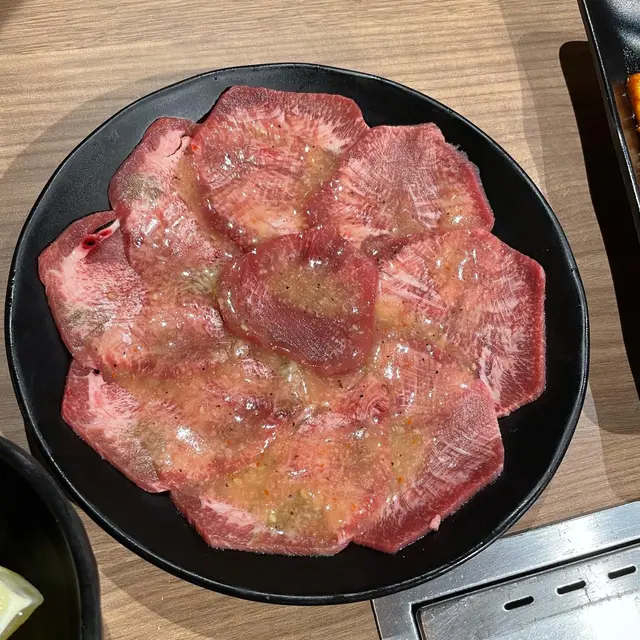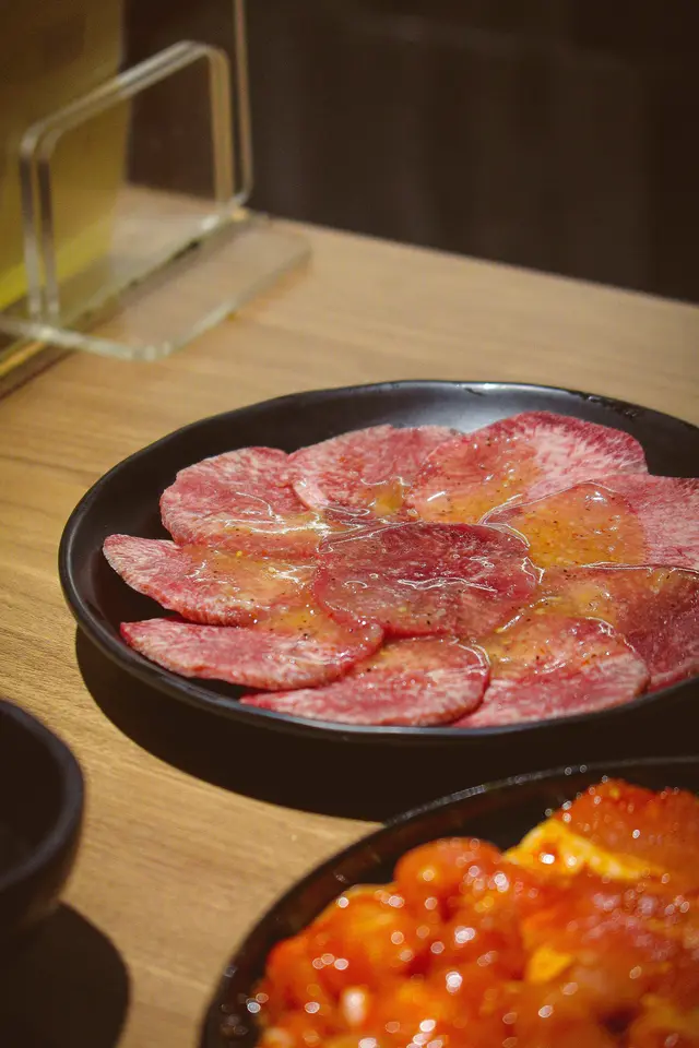 餐廳空間寛敞,裝潢配件亦顯心思,帶出日系悠和風格。座位之間亦有足夠空間,可以自成一格地用餐。薄切特上鹽香牛舌 ($88)• 選擇了以鹽醬作為配搭,醬汁剛好吊起牛舌的香味,使肉味更香濃一點,但又不至於太咸而奪走牛肉的味道。• 牛舌的厚度適中,炙燒一會便已足夠,食到爽脆的口感之餘,又能嚐到油香。豚肉雞肉三點盛合 ($168)• 盛合包括:豬五花、櫻姬雞腿肉及豬頸肉。全部都以長條狀呈上,品嚐時有種啖啖肉的感覺,口感十足。• 兩款肉都醃得均勻入味,基乎不用醮醬汁都十分滋味。• 豚肉的肉味頗香,肉的質感偏向有咬口;雞肉則較為嫩滑,把皮的部份燒得微焦會更香口。極上和牛板腱 配 月見汁 ($178)• 肉和油脂的分佈大概是7:3,頗為大片,而切割的厚度亦剛好,可以很快便燒出成品之餘亦充份保留到牛肉原始的味道。• 配上嫩滑的月見汁,使原本香濃的牛肉外層微微包裹著生雞蛋的滑溜令滋味程度大大提升!…查看更多