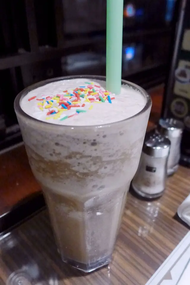 門面既霓虹燈牌好吸睛,入到去係有兩層,裝修行懷舊風,下層坐滿既關係被安排到上層,見牆上掛有啲舊相🙃▪️ 香煎美國西冷牛扒(7/10)💲148睇中呢間既皇牌鐵板扒類系列,全部都係可以配黑椒汁、燒汁、蒜蓉汁🤗要左個蒜蓉汁,出到黎會微鹹比較重口味,所以唔駛落太多😳西冷牛扒五成熟,質感大致上軟腍,間唔中有啲筋位,牛味亦都夠香濃既,仲有啲薯菜伴碟,薯角外脆內軟好啖啖薯,但調味有少少偏鹹🙈▪️ 香煎美國牛柳配大蝦(6/10)💲168燒汁無蒜蓉汁咁鹹,牛柳厚身切落去比較結實,但肉質會韌,味道比起西冷牛扒遜色,大蝦未算係好新鮮,食落會有雪味,同埋質感可以爽彈一點會更好,薯角同樣係偏鹹🤔▪️ 薄荷朱古力(7/10)💲+10 (跟餐) / 30特飲跟餐只係加$10,呢杯既質感係沙冰,入口都係磨得細滑,薄荷味頗為突出,亦有彩色朱古力碎同陣陣朱古力味☺️▪️ 香濃朱古力咖啡(6.5/10)💲+10 (跟餐) / 32一樣都係沙冰質感,至於朱古力味同咖啡都係有既,不過兩者都唔算好濃咁🤤🔎 整體評分(6.5/10)…查看更多