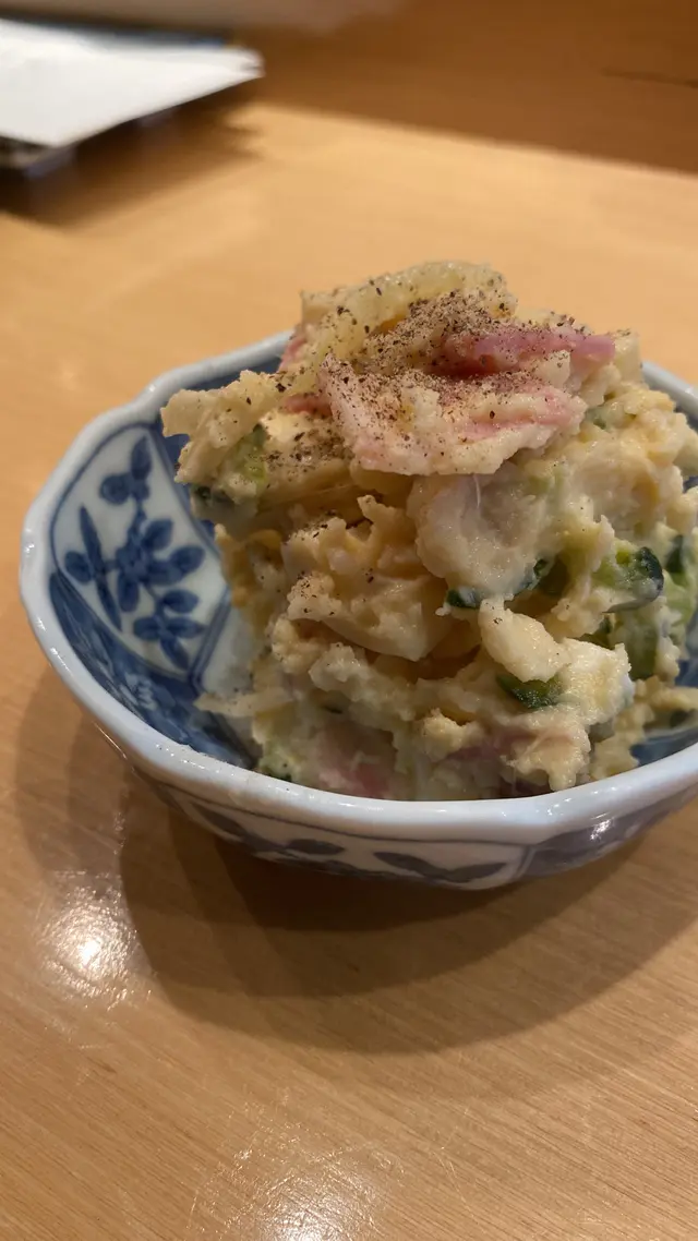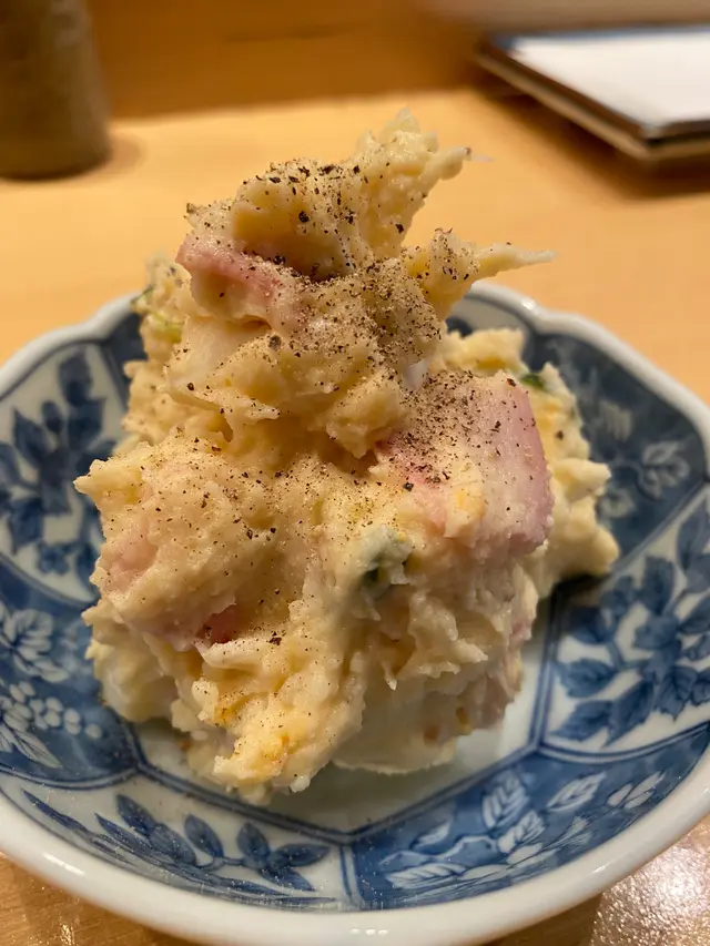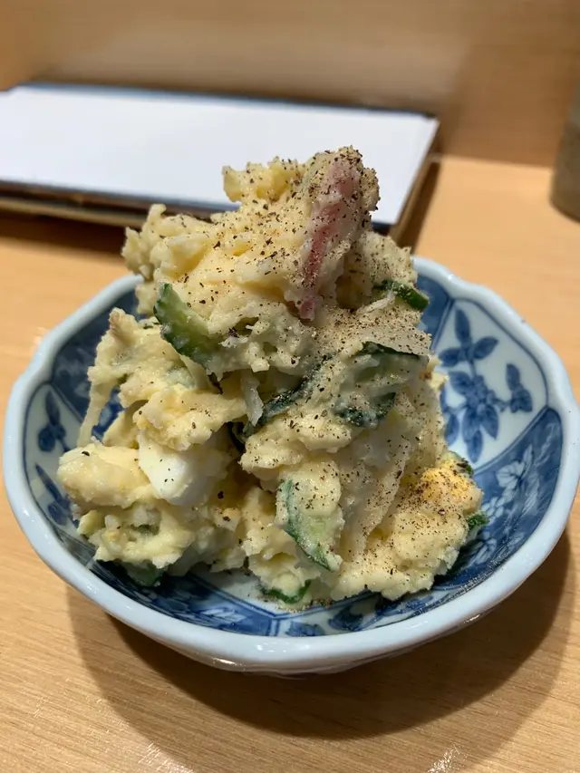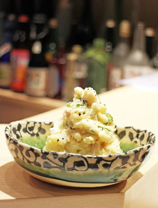 一直都聽講呢間日本串燒十分難預約,一個幾月前就想試下係咪真係名乎其實,今日終於嚟到試🥹店入面裝修好有日本地道小店風,坐Bar枱好有Omakase 感覺,日本師傅仲會同客人飲酒,成個vibes都好relax好舒服👍🏻我哋主要叫嘅都係熱門菜式第一碟食係薯仔沙律,我真係唔明點解一個咁普通嘅薯仔沙律可以咁好食😂落咗特別嘅調味料,連平時唔鍾意食薯仔嘅朋友都覺得好好食👍🏻Impressive其餘嘅炸物都好高質,炸粉薄,每樣野都拿捏到啱啱好嘅金黃色👍🏻特別難忘嘅係水牛芝士,鯡魚子昆布海膽同明太子意粉。炸鯡魚子入邊好爽口嘅一粒粒魚子,加上面頭好creamy嘅海膽,一暖一凍嘅口感,完全衝擊味蕾😳口感非常豐富!明太子意粉望落普通,但係食落口絕對有驚喜,完全冇諗過一間串燒店整個意粉都可以禁好食😂炸雞胸肉芥末醬雞胸好嫩🤤好夠熱好夠脆👍🏻唯一個人覺得一般嘅係日本水茄子漬物,見佢寫咗喺牆上,係廚師推介就試下。水茄子口感比較爽身,同我本人期望軟林林茄子吾同。但係不得不説調味非常特別,味道有少少似蒸魚豉油,有薑蔥,加上芝麻嘅香味,出邊好少食到嘅冷盤,只係唔岩我個人口味😂總括而言,我覺得好值得試,價錢吾貴,食物高質👍🏻Overall: 8.5/10…查看更多
