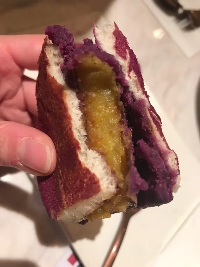 Beat Bakery係一間係中環新開既Bakery,佢之前係TST已經開左第一間家啦。今日叫左幾個包當lunch,因為見到佢d包好吸引! 係到我主要寫番薯薯家族同埋藍色風暴。薯薯家族,睇樣已經比佢吸引住,有成舊蕃薯係裡頭,仲要紫薯包圍住。食落蕃薯🍠好甜,但唔係死甜/假甜果隻,所以佢個蕃薯係好靚,麵包質地軟屬不失口感,高質之選!藍色風暴,呢個包外形好吸引,我諗好多人都會比佢個外型draw 到 attention,咁佢既味道又係如何呢?佢其實係blueberry cream 餡料,麵包🥯質地同上次講既一樣,都係柔軟,blueberry cream方面份量岩岩好,味道都富blueberry味之餘又唔假,食落都唔覺heavy,所以我覺得呢個包有外型之餘都好味既,可以一試!…查看更多