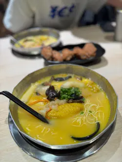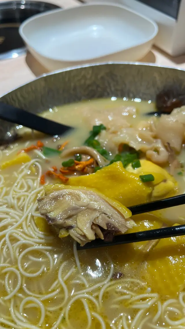✨藏身觀塘工廈的暖心小店「雞駅」🐔以真材實料的花膠雞湯麵作主打,堅持每日用材料熬製無味精湯底,工業大廈內別有洞天,簡單裝修卻飄散著濃郁藥膳香,值得欣賞🤤🌟 姫松茸竹笙花膠雞淮山麵🍜湯底菌香濃郁,竹笙吸飽湯汁好入味👍🏽雞件多肉少皮健康之選😂淮山麵幼身滑溜👅🌟 藥膳黃酒花膠雞淮山麵🍜建議加$10轉左雞髀🍗雞肉嫩滑啖啖肉,藥膳溫補養生,黃酒香氣湯底濃郁,花膠滑溜中帶膠質黏唇😍🌟 悍匪雞翼🍗撒滿胡椒孜然,雞肉外酥內嫩,大大隻好有口感🌟 金磚豆腐即叫即做熱辣辣,外脆內嫩,咬開豆腐軟滑感好吸引,一粒接一粒🫦💫最好呢間小店就係消費滿$200可以玩夾公仔機🧸好好彩夾一次就成功左🏅😜另外現場仲有羅漢果茶免費飲用,好貼心的小店💕…查看更多