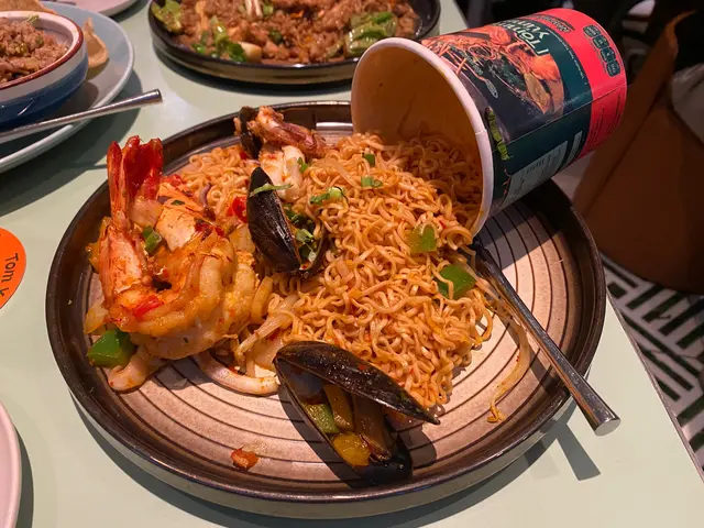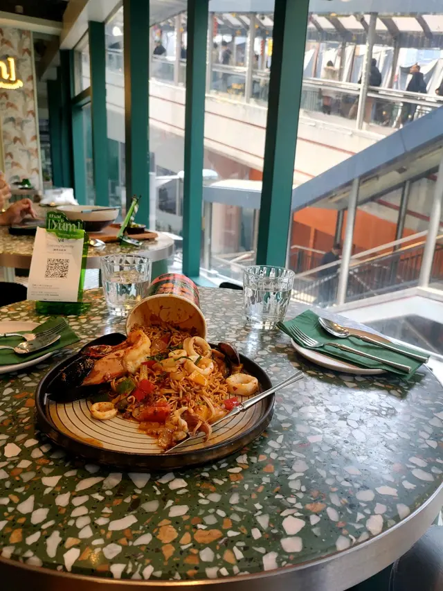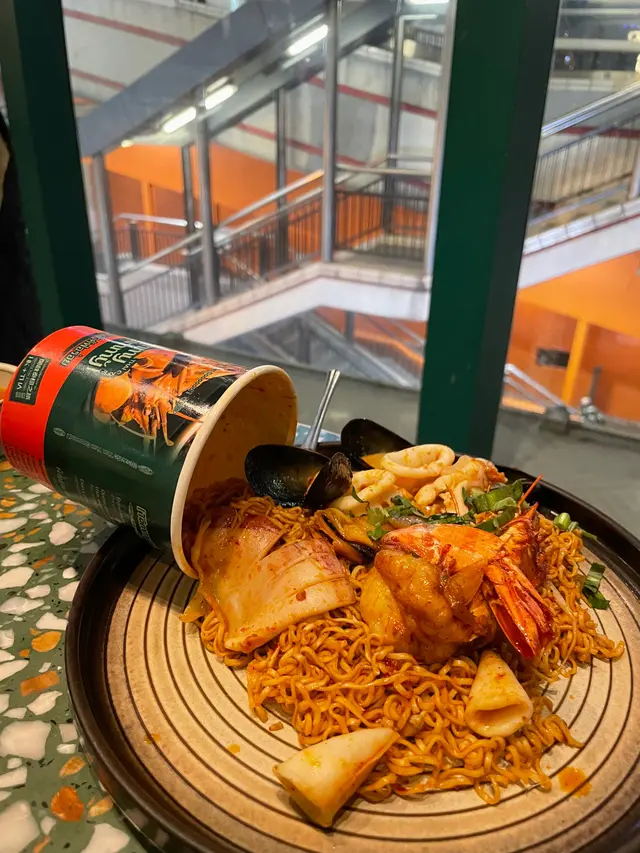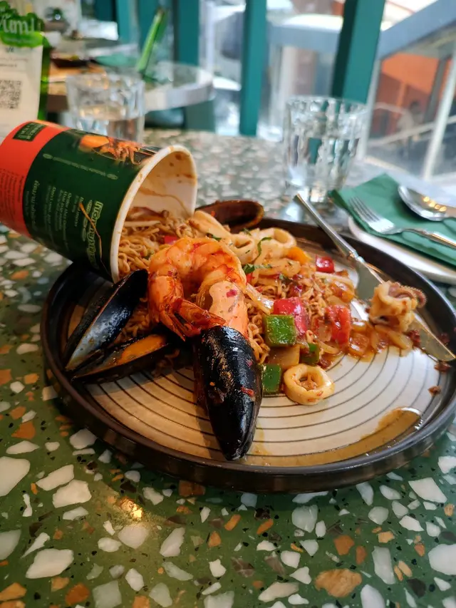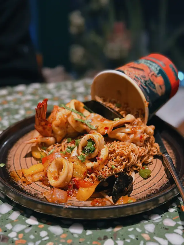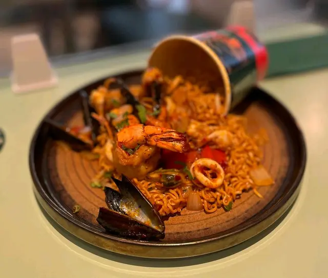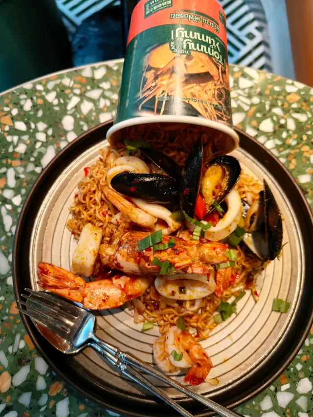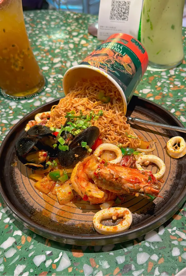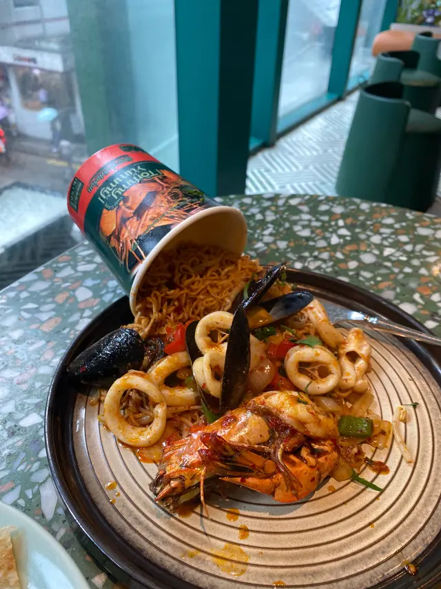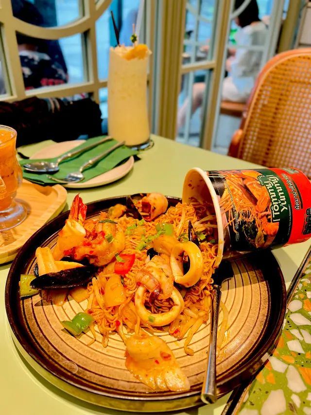 🥢虎蝦海鮮混亂杯麵 $148本身諗住都係gimmick嘢無咩特別 但見到係人氣no.1而且配搭都係我鐘意嘅就嗌咗嚟試試😗麵底炒得好好 調味均勻之餘濕潤程度啱啱好 有唔少辣椒碎但其實唔辣der配料方面有好多海鮮 4隻青口連殼 6隻爽口大蝦同埋大量魷魚圈同埋鬚鬚👑當之無愧No.1推薦!👑🍍泰式菠蘿雞肉炒飯 $108呢款就正正常常啦 飯底炒得都乾身但調味就無特別惹味跟餐都加配咗一隻雞翼 香口少油🔥海鮮冬陰功湯麵 $128呢款嘅海鮮同樣係蝦 青口同埋魷魚調味酸辣適中 不過就略顯上枱時湯底已經唔太熱 扣咗啲分。🍧芒果乳酪疊疊冰 $118另一個吸引我哋嚟嘅餐點😋旁邊嘅黃色磚其實係芒果酸奶冰磚 入口奶滑似食緊雪糕咁下面係芒果綿綿冰包住中間嘅椰子雪糕 整體偏奶感但唔會太甜👌🏻☕️泰奶Tiramisu $68呢款應該係全餐最normal嘅一款🥲佢應該係想行一個比較創新風格嘅tiramisu傳統會將手指餅提前浸泡咖啡液再鋪一層但呢款就將原條手指餅放咗喺面 所以層次口感方面就比較單一一啖不落去只有忌廉狀嘅嘢 就係mascarpone cheese 底層嘅泰奶忌廉 同埋面頭嘅可可粉旁邊都會配翻個濃稠嘅泰奶醬俾你我哋齋食咗一啖 係帶茶葉甘味 幾乎0甜味…查看更多