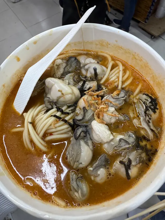 🦪蚵仔特濃擔擔麵$45擔擔麵湯底係🥜花生味加🤏少少辣味🌶️,湯底🥜花生味好突出,淨飲湯底都好飲👍🏽蚵仔🦪勁足料、又大粒😋咬落仲有少少爆汁,味道重海鮮味,幾正😋;不過擔擔麵同蚵仔都偏重味,🐻🐻❄️覺得兩樣夾埋做唔到相輔相成嘅效果,但都已經好唔錯~麵條用咗冷麵,如果你鍾意麵質有咬口啲就啱你,不過🐻🐻❄️都鍾意冧身麵條多啲🤣💁♂️份量💁🏽♀️如果想掃街食多啲唔同種類嘅食物,小鳥胃兩個人share一碗就夠啦🤣P.S.店主好有禮貌👍🏽👍🏽…查看更多