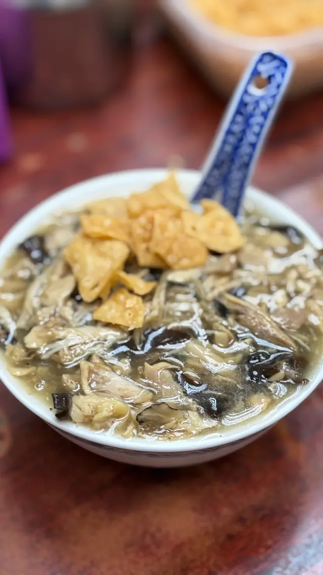 近幾日打風唔成天氣又由30度落到18度,自然想食嘢暖吓身。今晚2點經過觀塘見到呢間舖未收,即時入去坐低食返碗蛇羹先。呢間舖喺觀塘開咗超過30年,由於重建搬到而家宜安街嘅舖位。餐牌好簡單,淨係賣蛇羹蛇湯同糯米飯今次叫咗個B餐食勻晒三樣嘢舖頭現時由娟姐位公子打理,一入門口已經好熱情咁招呼,見到每張枱面都有檸檬葉,蛋散呢啲蛇羹必備嘅配料,蛋散有少少南乳香味脆卜卜。問咗老闆佢話任食。之後佢𢳂咗一碗滿滿嘅蛇羹,好似𢳂飯咁一個弧形!蛇羹材料豐富,有陳皮香氣,爽脆嘅木耳絲提升咗蛇羹嘅口感。加埋檸檬葉絲同蛋散一齊食,每一啖都非常滋味。蛇湯顏色清澈,唔會好似出邊咁加啲熟地整到黑鼆鼆,有當歸嘅香氣同幾粒杞子點綴。飲兩啖真係成身熱晒。糯米飯蒸到粒粒企身,配備臘腸、炆冬菇絲同花生,食落煙韌,配少少調過味嘅豉油,非常惹味。街坊生意,要留住新知舊雨,除咗食物味道,人情味同樣重要。差唔多食完,老細主動問需唔需要加多碗湯。以前娟姐喺舖主持大局時,都已經會送蛇湯比客飲,估唔到呢個咁窩心嘅傳統到宜家仍然保留。而且現時嘅營業時間到深夜3點,到入冬後仲會收4點!!方便半夜三更天寒地凍想補身嘅食客。…查看更多