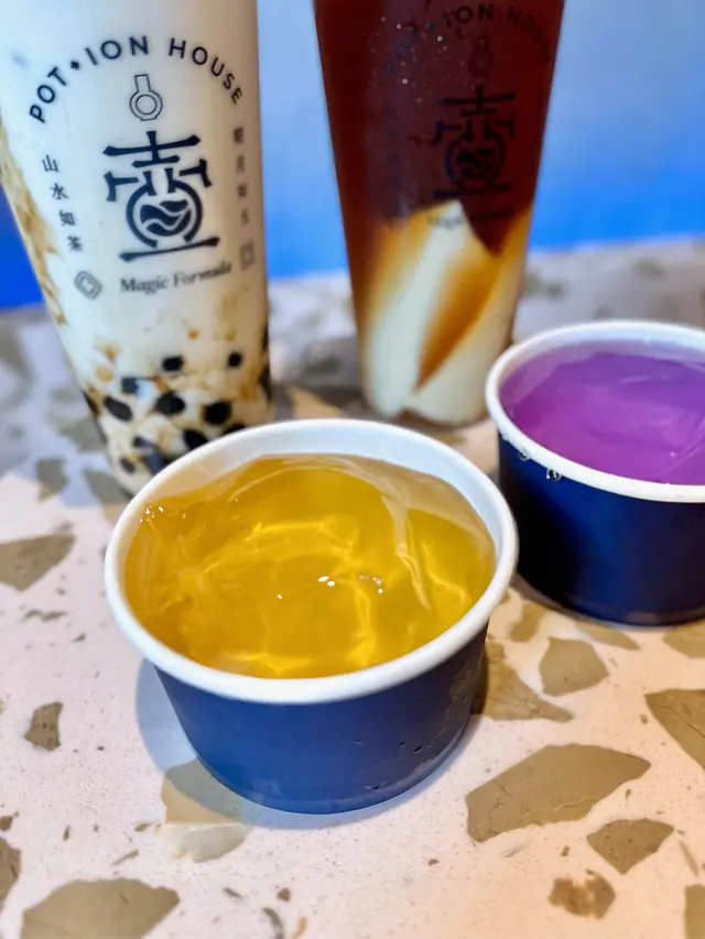 壺 Potion House @pot.ionhoue📍灣仔大王東街20號地舖.最近灣仔新開左間台灣過江龍手搖茶飲店—— 壺,主打以自家手工製果凍為基底,特色口味包括:杏仁凍、豆漿凍、咖啡凍、桂花紅棗凍、蜂蜜菊花凍、蝶豆花檸檬凍等。店舖提供多款飲品系列,包括花香茶飲、奶茶或咖啡、水果茶及芝芝奶蓋,總有一款啱你飲😆.🖤 黑糖珍珠鮮奶 $38: 黑糖同鮮奶嘅比例剛剛好,奶香濃郁,珍珠粒粒都Q彈煙韌~🤍 熟成紅茶豆漿凍 $32: 熟成紅茶口感厚實,茶香味甘,怕甜嘅你呢杯飲品可以叫微糖,豆漿凍好似豆腐花咁滑嘟嘟,帶點甜~💛 蜂蜜菊花凍 $15💜 蝶豆花檸檬凍 $15: 夏天咁熱食杯凍jelly就啱哂,清涼又爽口,蜂蜜菊花凍味道清甜,淺紫色嘅蝶豆花檸檬凍酸酸甜甜,加$2仲有白玉珍珠𠻹~…查看更多