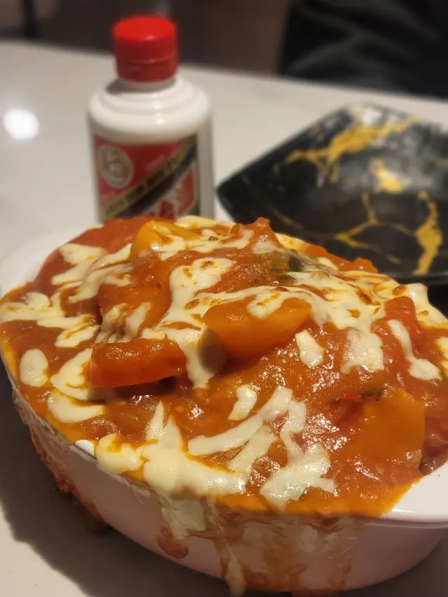 醬香咖啡,醬香雪糕,你都試了嗎?那醬香和肉餅就更不能錯過了!茅台還是跟鹹吃最配!😆七點到店已經人頭湧湧,還好剛好不用等位🍀👍🏼 即炸燒賣 $15先來個小吃,真的是即炸,外皮咬下去卡卡響,脆口不會硬,裡面還是煙韌!❤ 蜜桃鮮茄焗豬扒飯 $78嘩!份量大到有點嚇到!😆豬扒超厚但非常軟熟很易咬開,直接用筷子夾起吃就可以了,除了因為太厚有點重🤣炒飯炒得很香很乾身,配上滿滿的蕃茄醬,吃得很滿足喔!❤ 醬香肉餅飯配蘭王蛋 $128主角來了!很有儀式感的在客人面前,倒滿了一杯茅台再灑上肉餅,開火燒焦,酒香肉香撲鼻而來!肉餅外皮微微焦脆,裡面的肉汁多的要溢出來!而當中的highlight是蘭王蛋,混了一點酒香的鷄蛋汁塗飯吃一流!值得一試喔!…查看更多