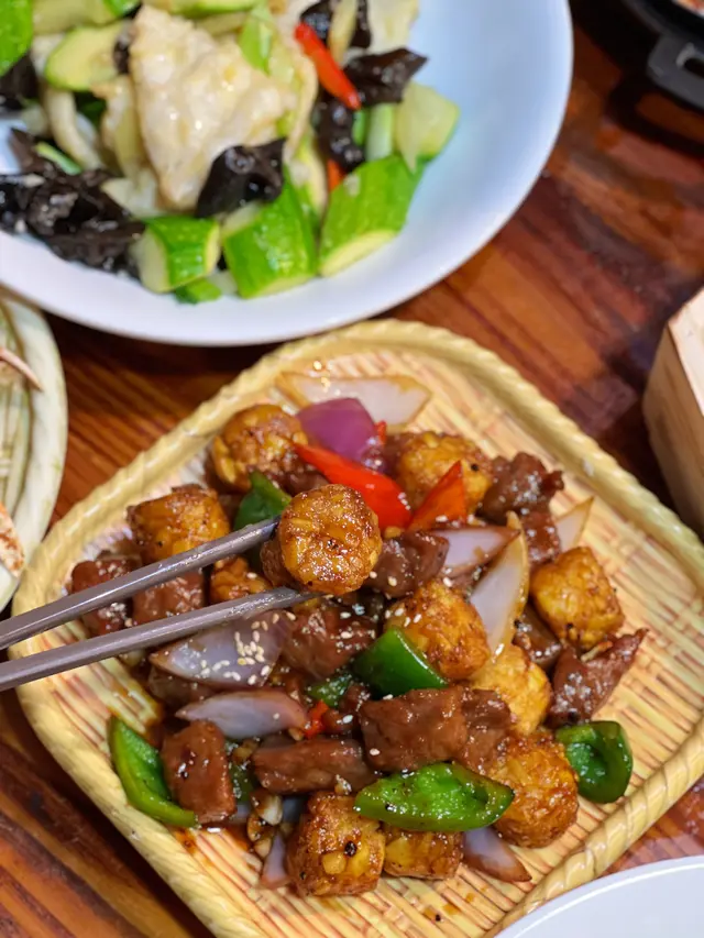 🙋🏻‍♂️餓底探員今晚去咗荃灣調查呢間打冷小炒菜館,餐廳嘅裝修充滿古式風格,喺度用餐好似置身於古代咁,食物用心製作,夠鑊氣,難怪坐滿人客🍲砂鍋卜卜蜆煲 $188📸表示啲蜆份量超多,鋪滿咗成個煲,好大鍋,底下有粟米,節瓜同粉絲🙋🏻‍♂️表示個蜆食落鮮甜,每粒都無沙,洗得好乾淨,個湯充滿住蜆肉,粟米同冬瓜嘅鮮味,非常清甜,由於啲蜆真係好多,食晒呢煲蜆都半飽🥩蜜椒脆薯牛仔粒 $128📸表示個牛仔粒加咗脆薯,蜜椒同洋蔥嚟炒,放咗喺個竹盤上,一上枱香噴噴,夠晒吸引🙋🏻‍♂️表示個牛仔粒肉質鬆軟,牛味香濃,薯寶炸得香脆,配埋蜜椒同洋蔥嚟炒,食落好惹味🥬雪裏紅蝦干通菜煲 $88📸表示個通菜煲份量多,入面加咗蝦干同豬肉碎嚟炒,一上枱聽到咋咋聲,熱焫焫好夠鑊氣🙋🏻‍♂️表示個通菜鮮嫩,配上蝦干嘅鹹香同豬肉碎嘅脂香,食落香口惹味📈吃貨指數😋好味度 8/10🔙返啅度 8/10…查看更多