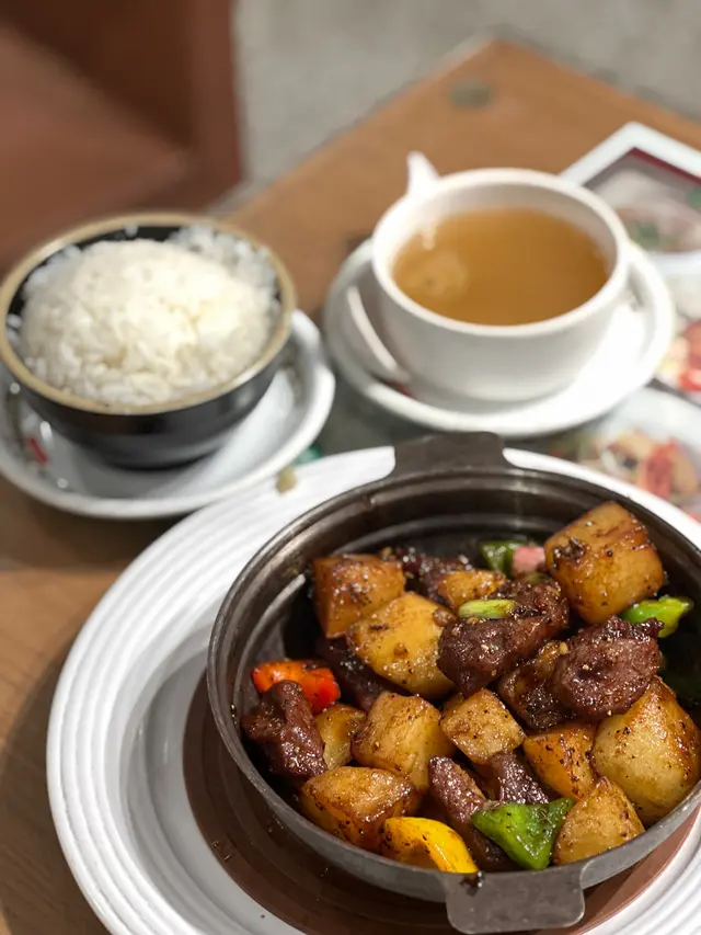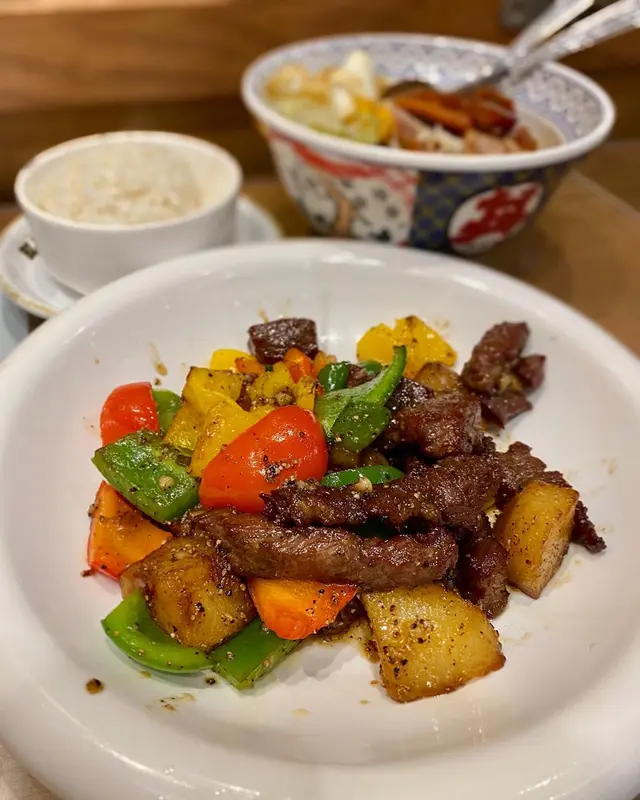 夜晚趕住食埋晚飯要睇戲,所以揀左呢間冰室🤩。去到餐廳時間尚早,唔算full,野食叫完都好快黎到⏳。🔅蜜椒薯仔牛柳粒 ($80)好耐無食過薯仔牛柳粒!比起牛柳粒,沾滿蜜糖既薯仔🥔先係精髓😎,炸得香脆又甜🥰。🔅鐵板美式雜扒 ($108)有雞扒、豬扒、煙肉🥓同司華力腸,仲配埋意粉/飯加羅宋湯🥣。鐵板好夠熱,一倒黑椒汁就滋滋聲🤭,不過記得唔好燒太耐,啲肉好快燶架👨🏾🍳~🔅蒜蓉西生菜 ($58)晏晝無食菜,夜晚補返食🥬😎~份量比想像中多😌。🔅奶醬厚切多士 ($22)貪心地叫奶醬多🍞🤫,煉奶花生醬邪惡組合加埋無得輸,多士又夠脆👍🏻。🔅透心菠蘿冰 (+$12)🔅凍檸茶 (+$3)💬價錢唔算貴,都坐得舒服,食物選擇都夠多。雖然見人comment講店員態度差,但我覺得又無呢個問題,可能係偶然做到燥/對住無理既客人既個別例子(坐收銀隔離見到好多西客😂)。…查看更多