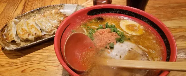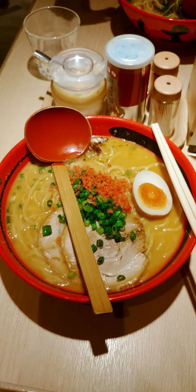 一入到去,環境幾大,埋邊仲有玻璃窗望海景食拉麵,感官嚟講一流。但可惜,一坐低諗住斟杯水飲,啲杯好油,好肥膩,好似冇洗乾淨咁,扣分食個前菜先,正正常常普普通通咁我就嗌咗個適量豚骨蝦味湯拉麵,啖湯超級精神,超重蝦味,上面亦有啲脆卜卜嘅炸薑粒增加口感。但係塊叉燒簡直不知所謂!又柴又乾,同X蘭果隻差唔多級數⋯但係隻蛋係好出色嘅,好流心。但得半隻⋯蛋都要慳⋯個麵不過不失,煮嘅時間剛剛好,所以口感幾好,全靠個湯底令到個面好食晒,啲人話湯底係拉麵嘅靈魂講得一啲都冇錯。同場加映煎餃子。普通到不能再普通。整體來說,應該唔會再試下一次。…查看更多